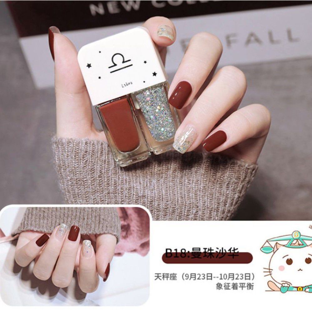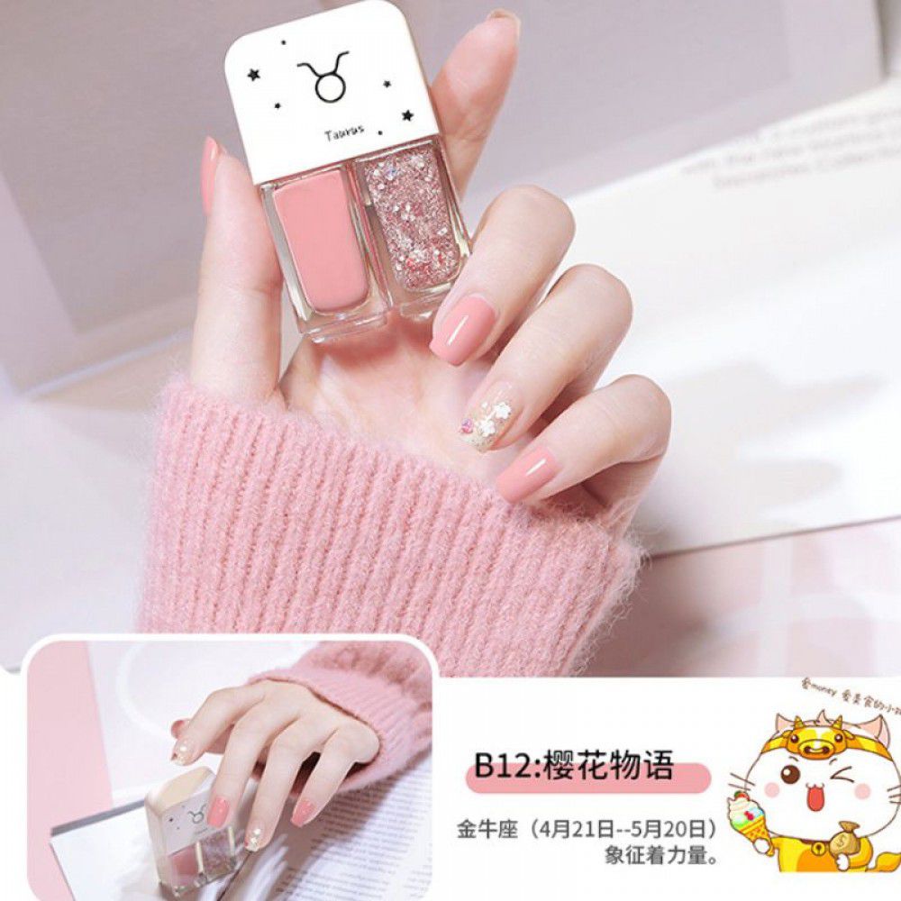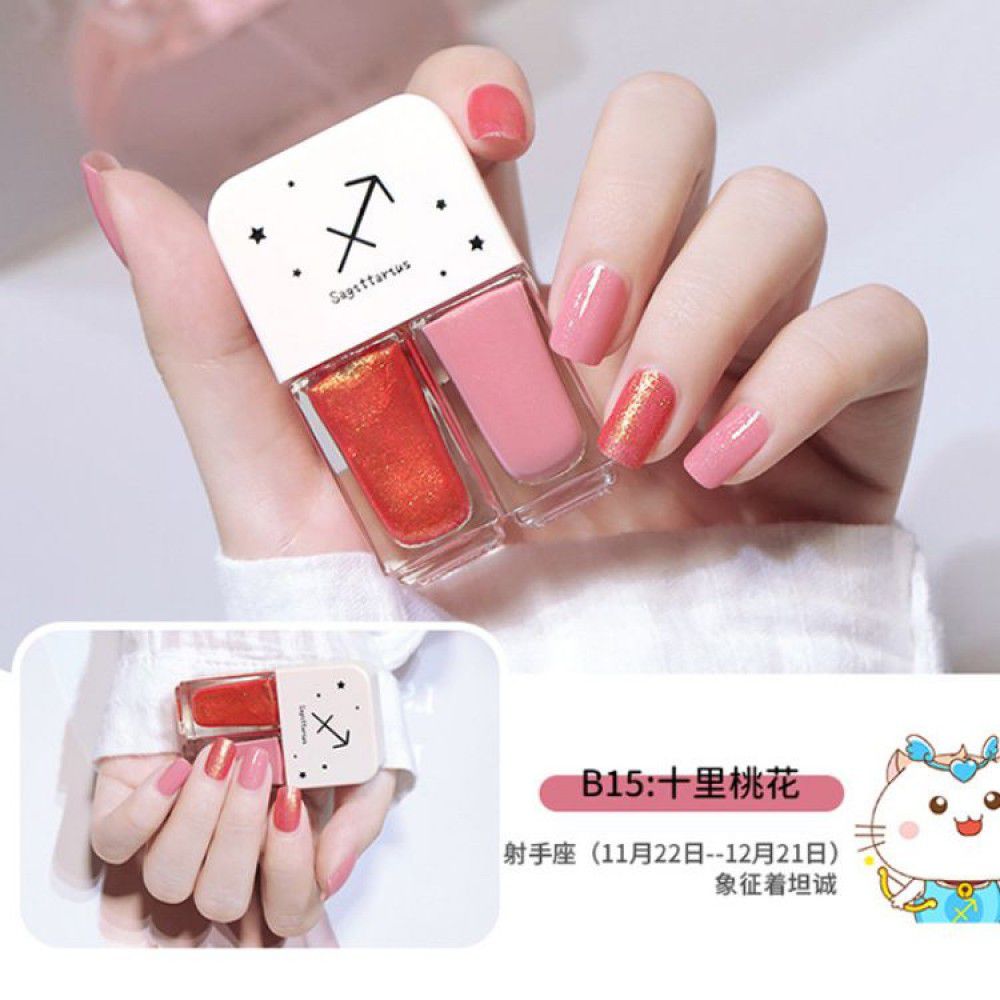 Water based bright surface sanding, non tearing, Twin Star nail polish, two sets, twin nail polish combination, can be substituted