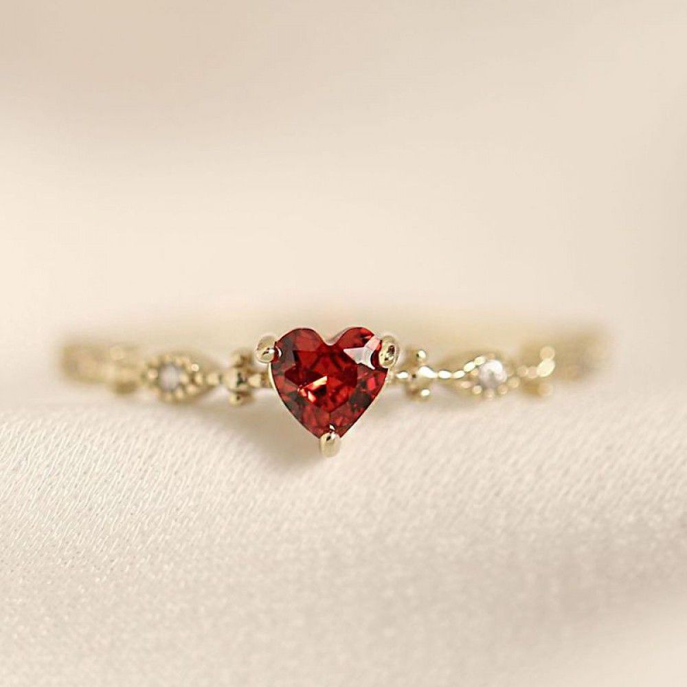S925 Sterling Silver women's ring tail ring love Ruby Japanese style elegant small fresh opening adjustment ring