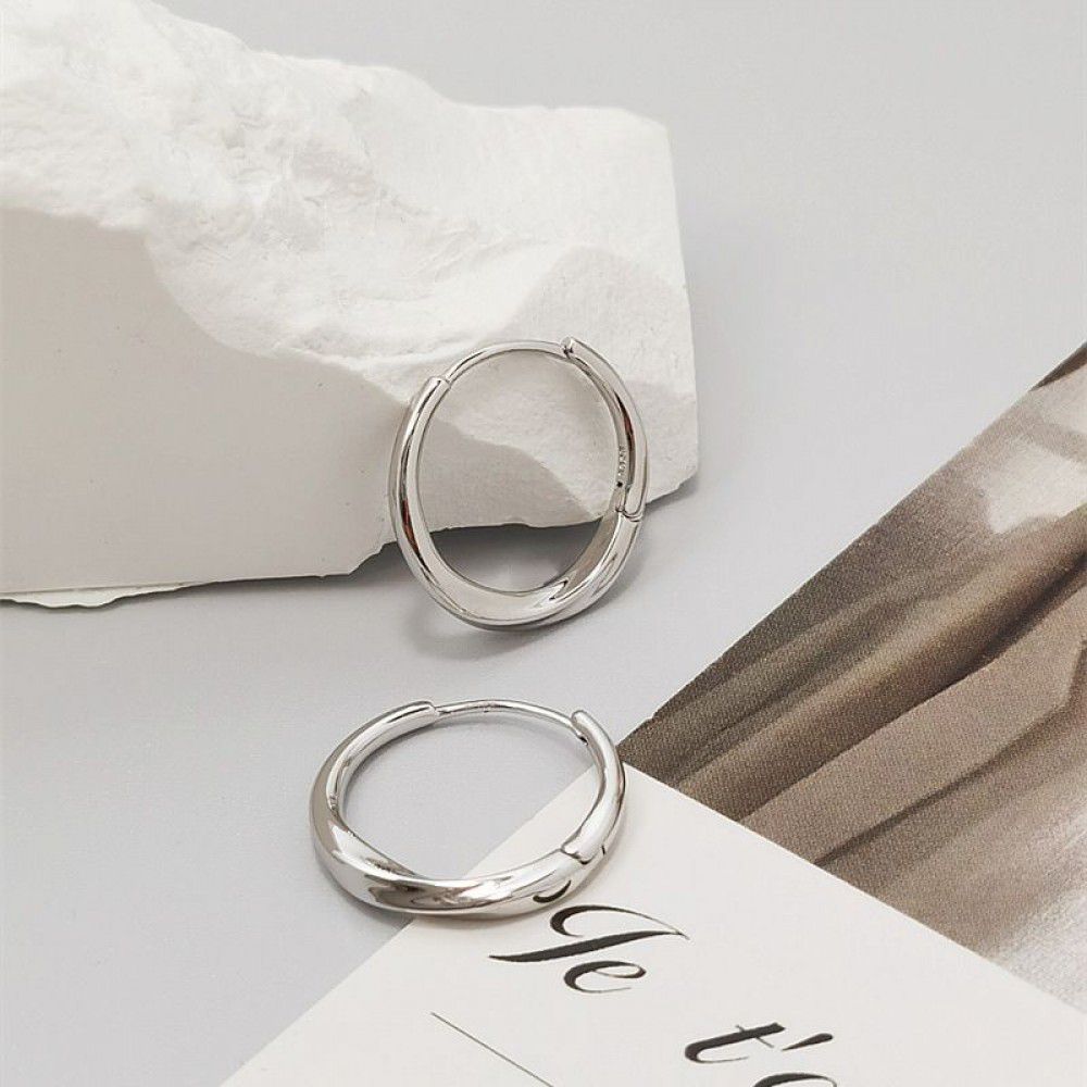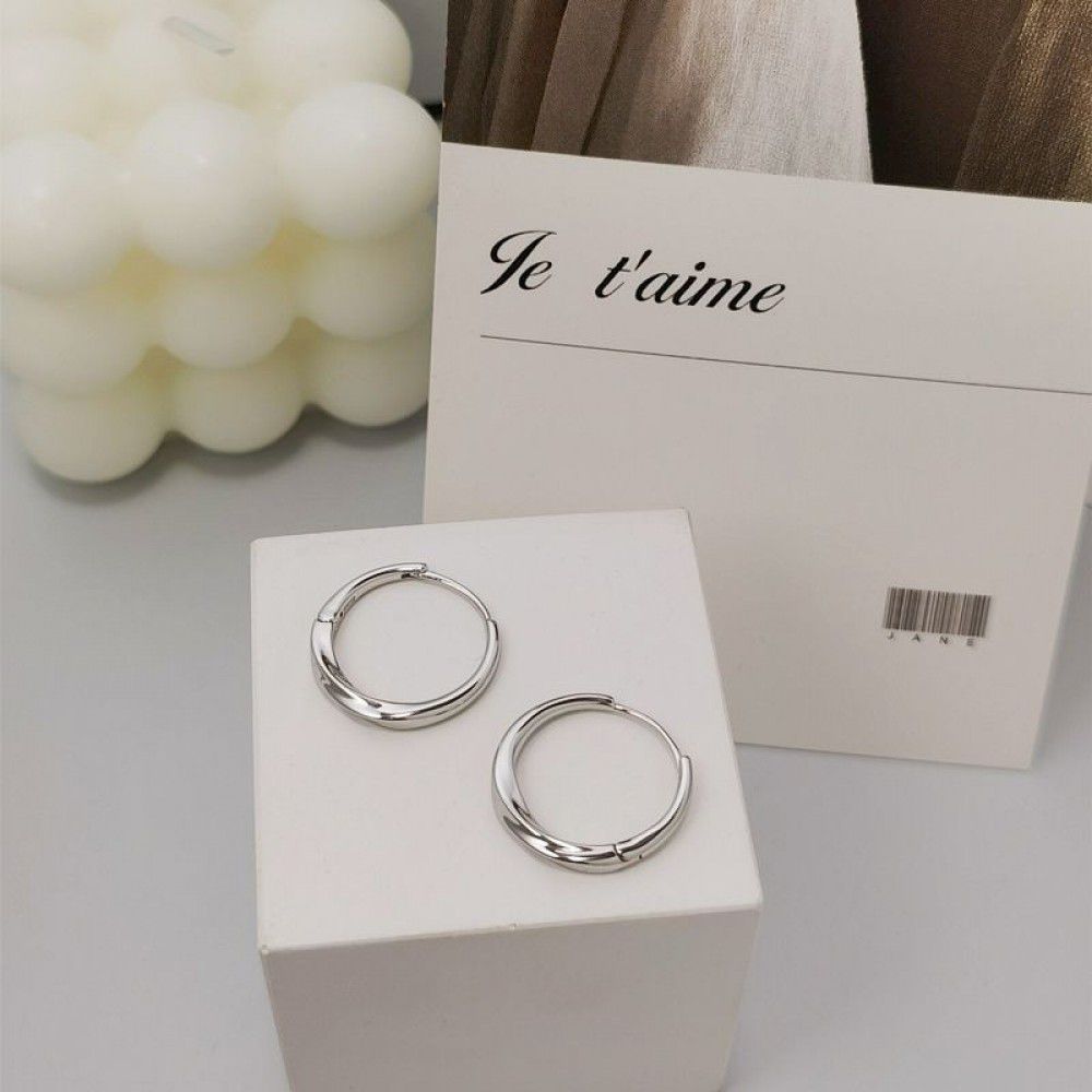 new all-in-one S925 silver ear buckle earrings, simple temperament, women's high-level sense, cool wind, plain Earrings