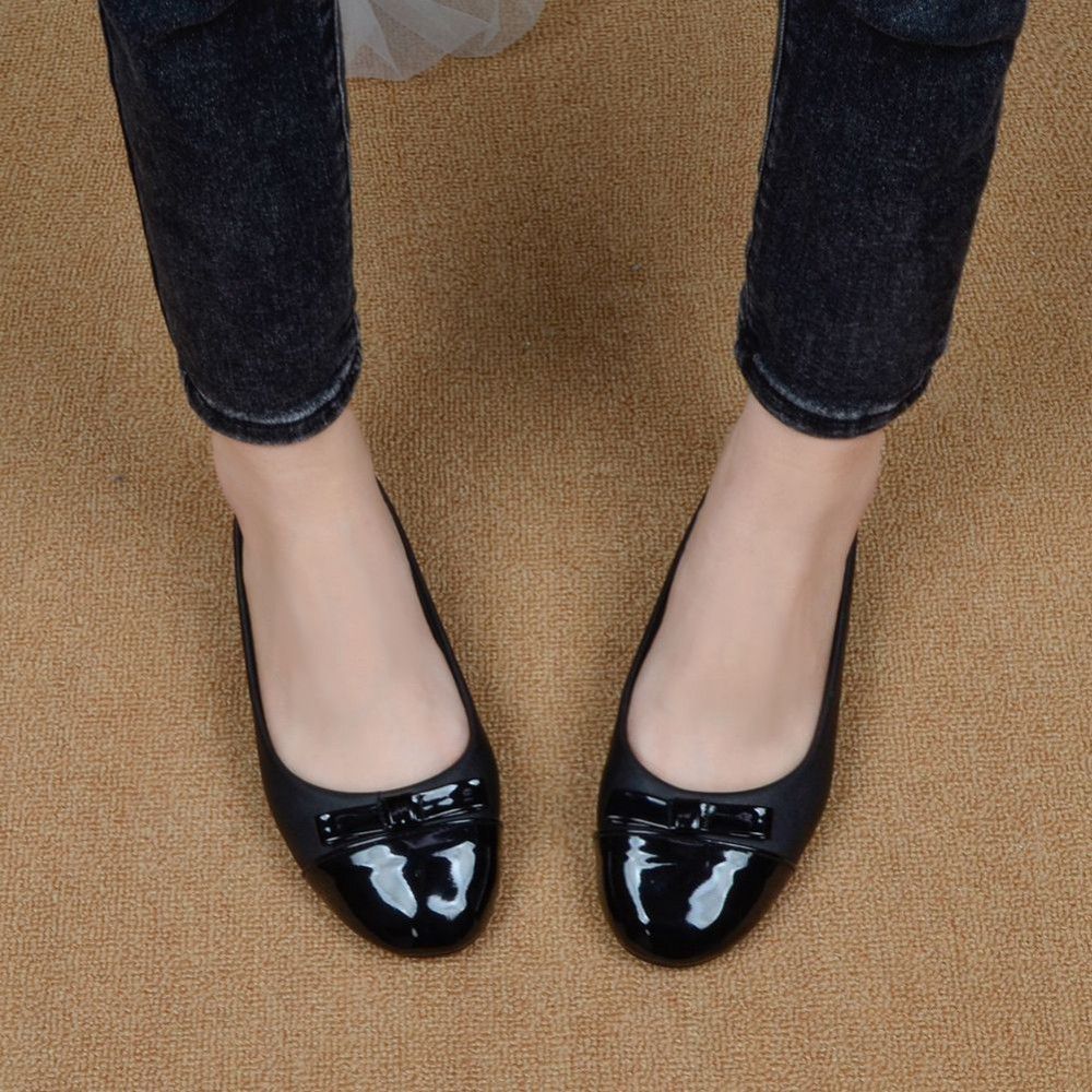 Spring and autumn small fragrance single shoes women's round head flat bottomed retro grandma shoes shallow mouth casual bow one-step pea shoes
