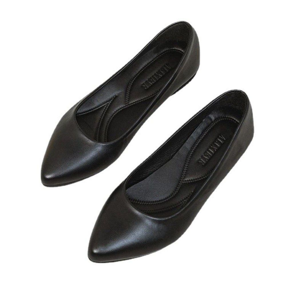 Work shoes women's spring and autumn single shoes soft leather soft bottom flat bottom black small leather shoes professional work thick heel low heel women's shoes