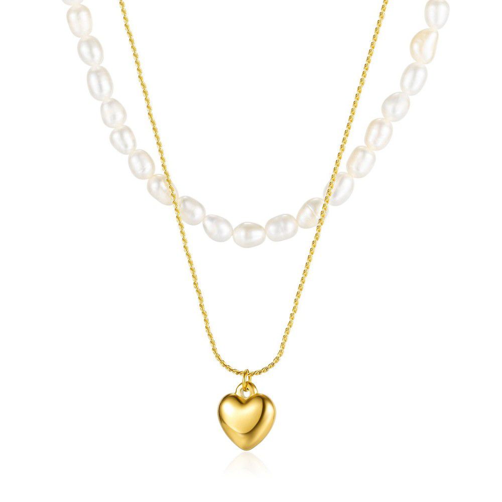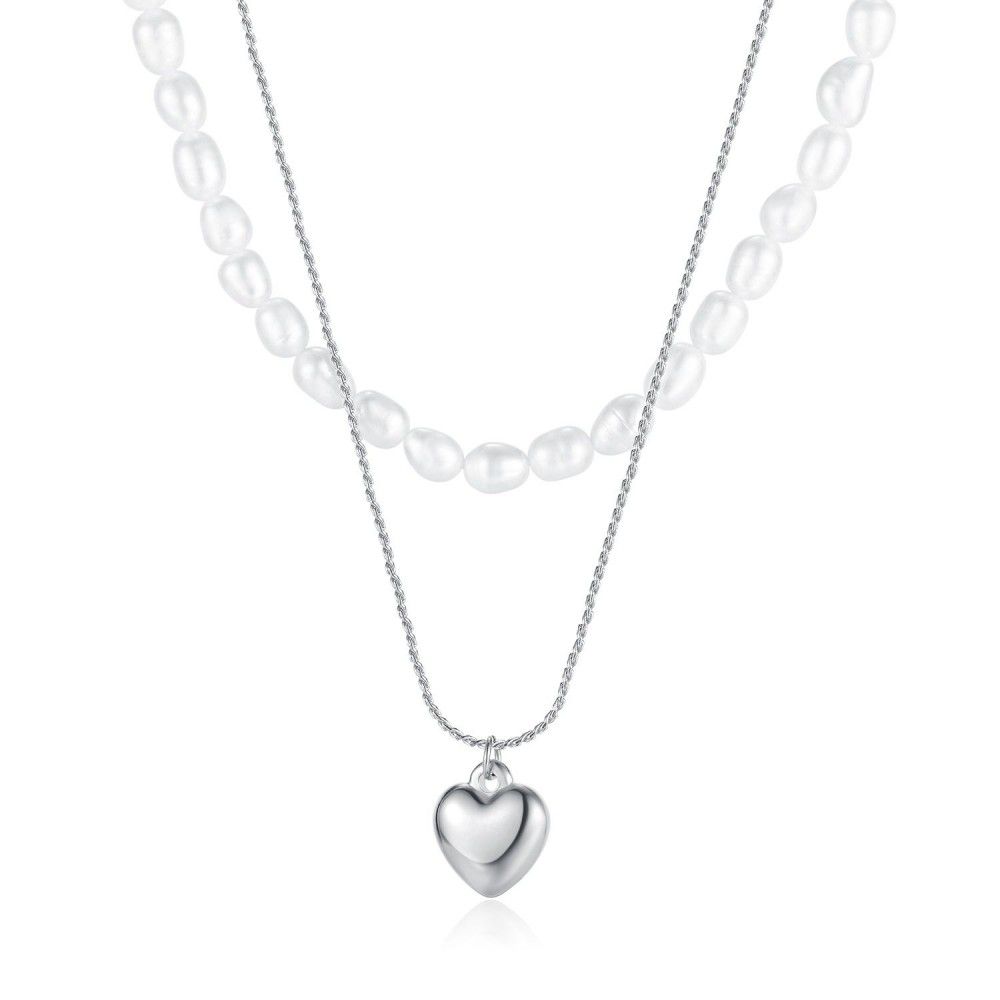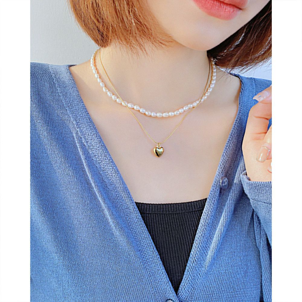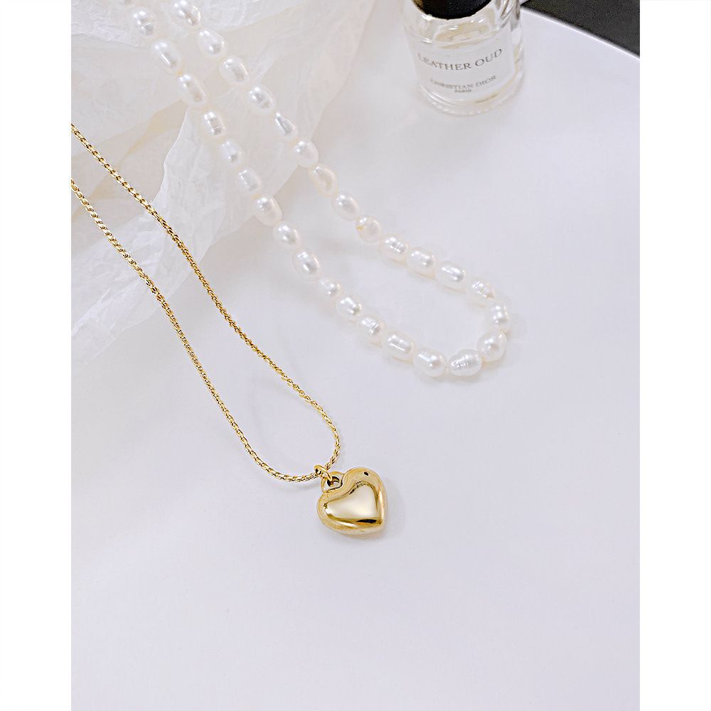 OPK jewelry French natural freshwater pearl clavicle chain female ins fashion light luxury versatile stainless steel Love Necklace