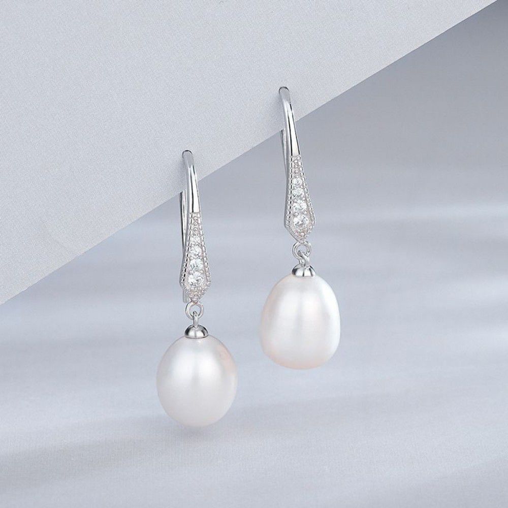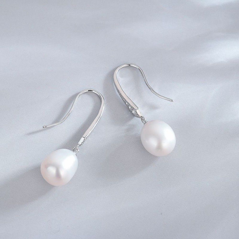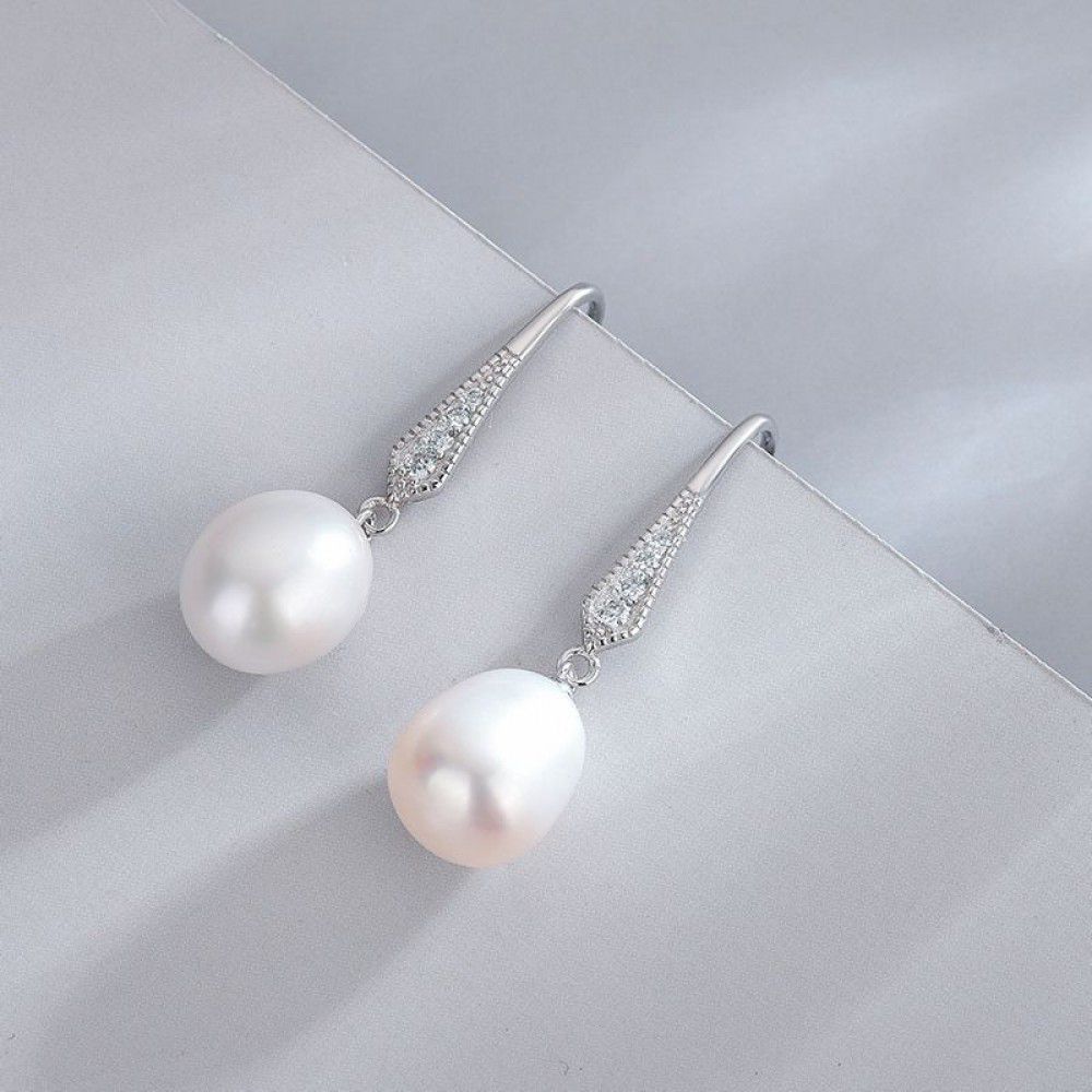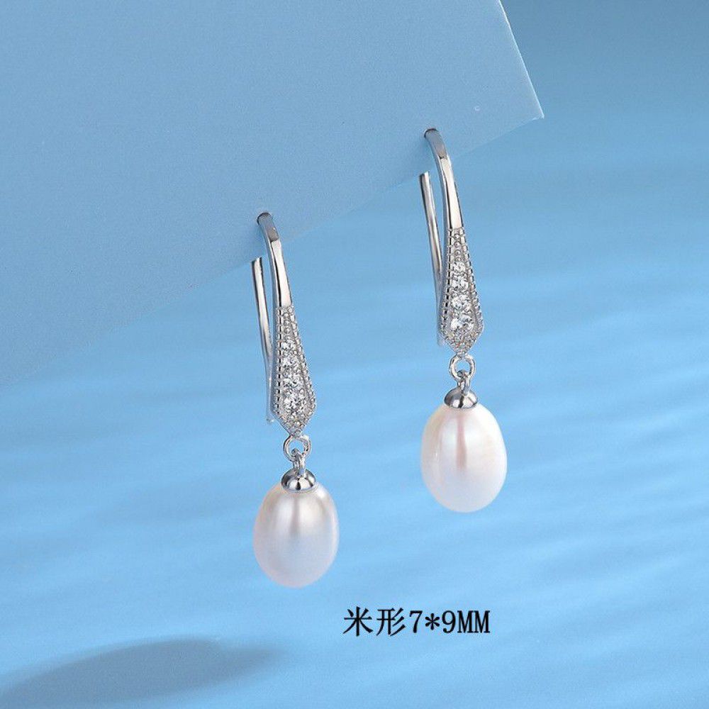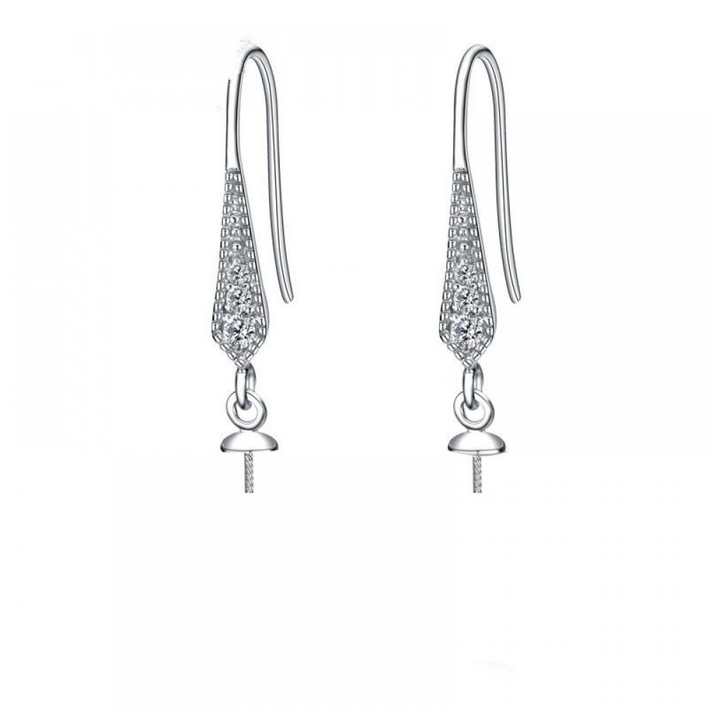 925 Silver Freshwater Pearl long earrings female European and American retro high-grade ear hook earrings DIY empty support jewelry wholesale