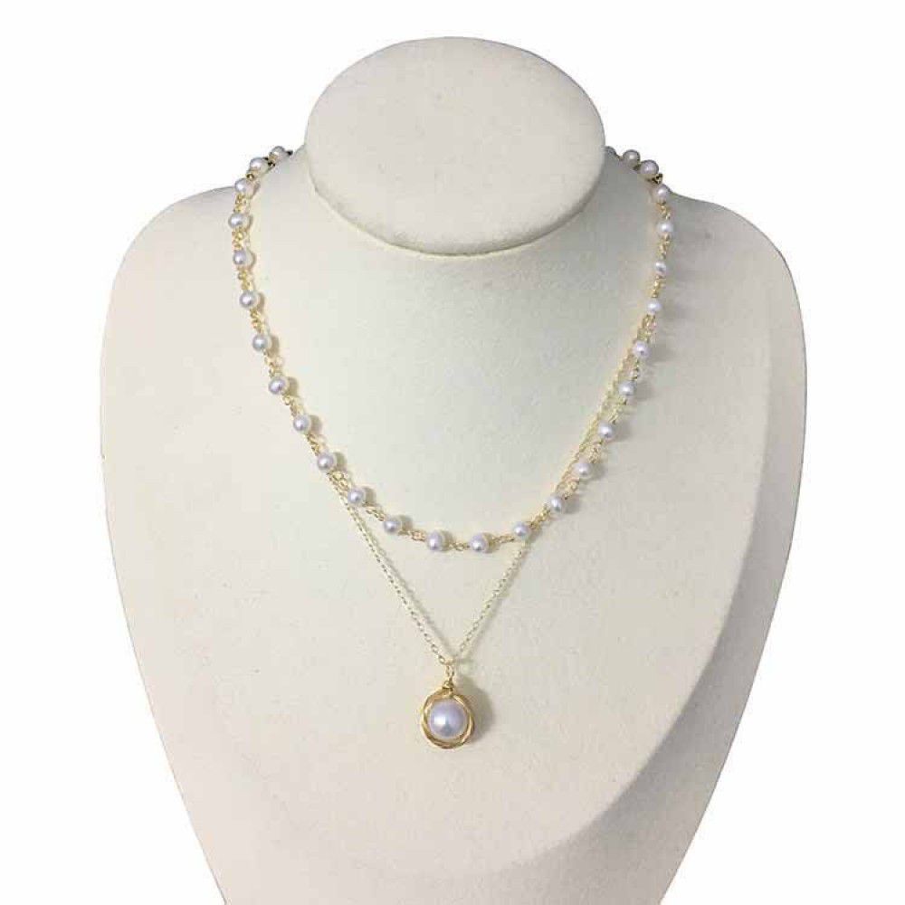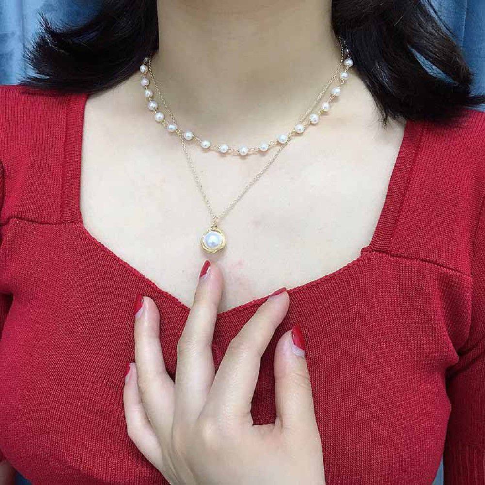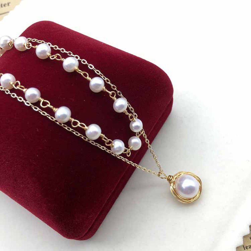 Tiktok net red 14K Gold injection French style double-layer star studded pearl clavicle Chain Necklace