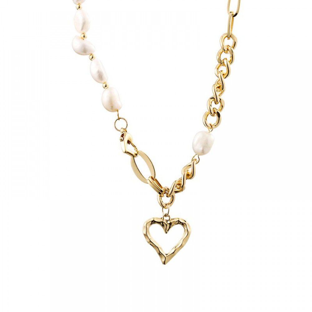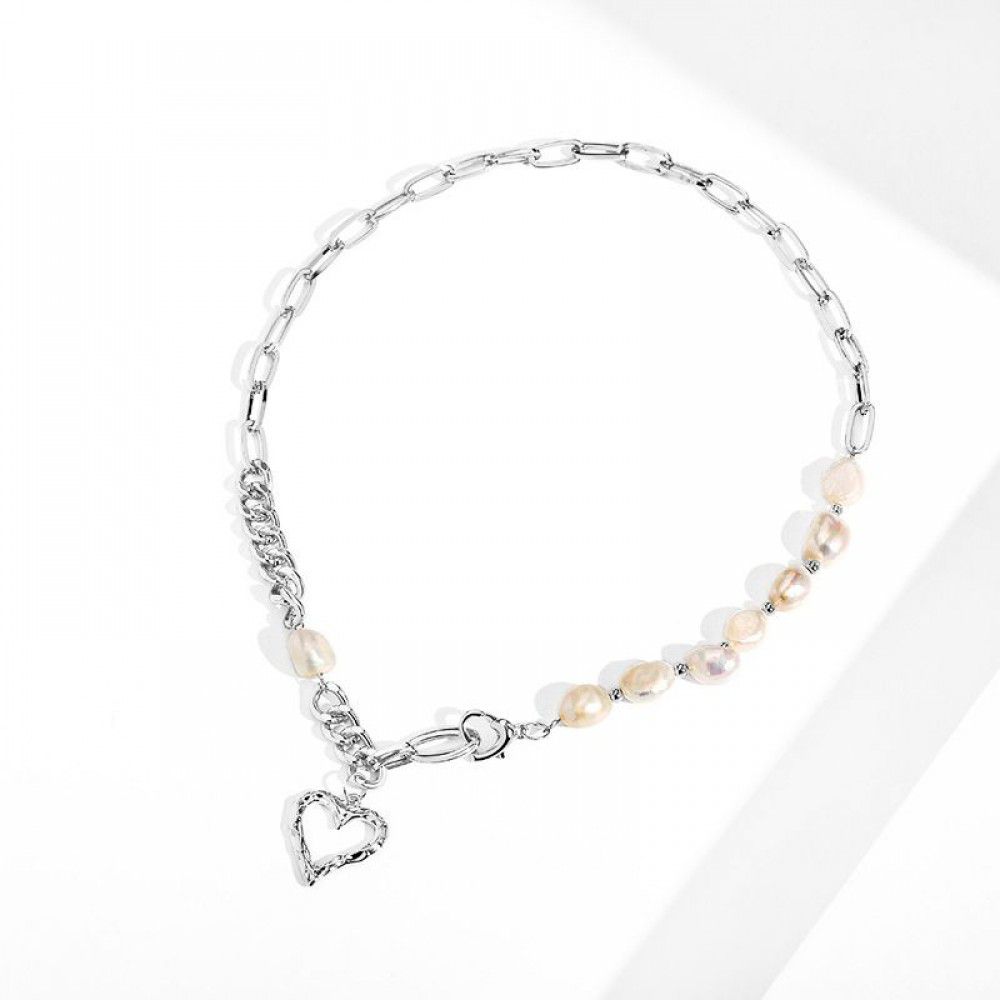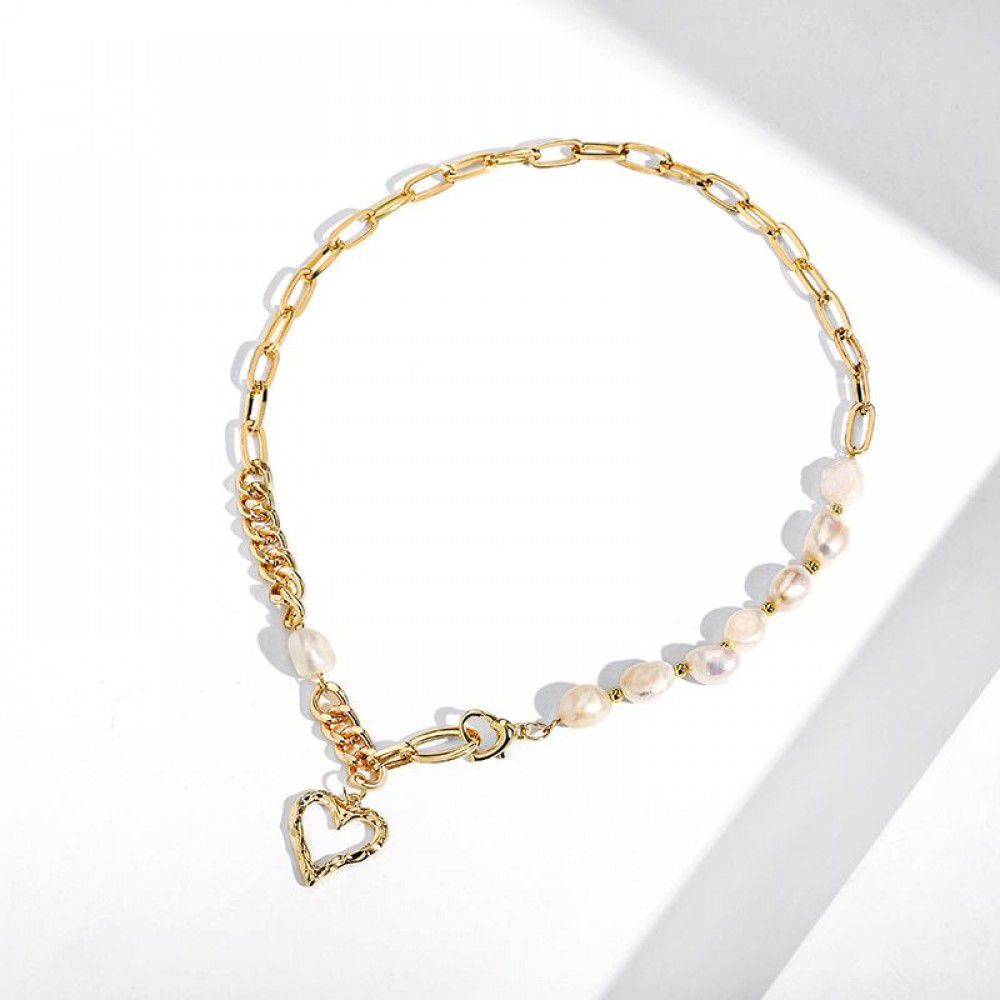 Natural baroque pearl love necklace women's stitching ins hip hop clavicle chain