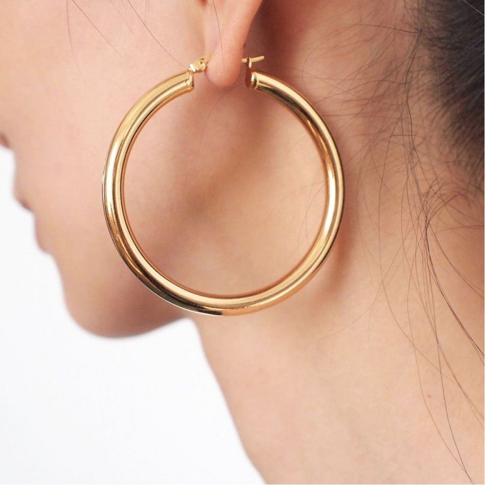 European and American new super large stainless steel round hollow earrings, high-grade photosensitive surface earrings, earrings, temperament, female ring jewelry