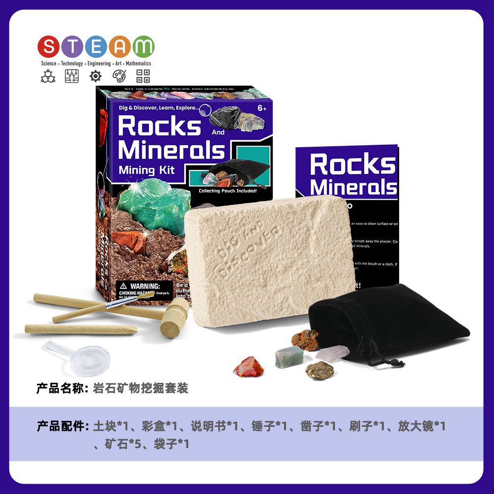Cross border creative DIY excavation of crystals, 61 treasures, gems, archaeological fossils, children's puzzle exploration and excavation toys