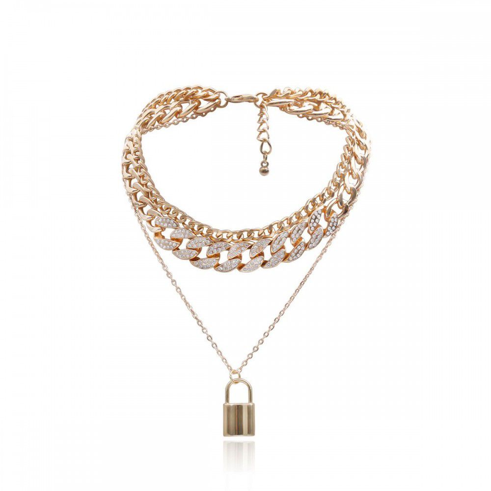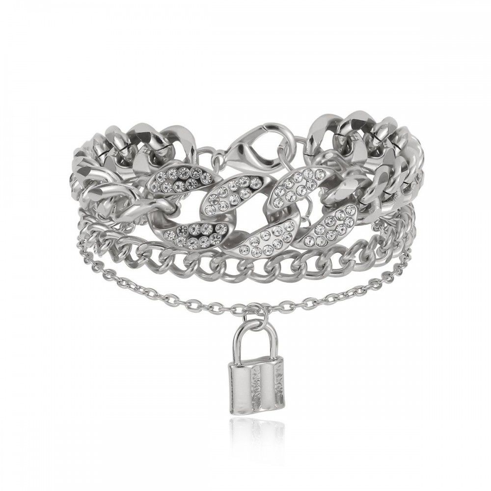 European and American cross-border jewelry fashion hip-hop thick chain set hand jewelry punk retro lock micro chain bracelet (female)