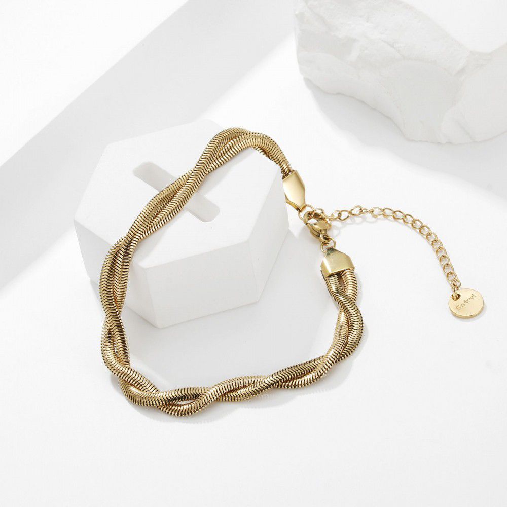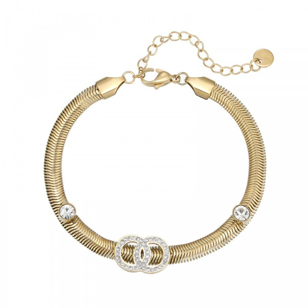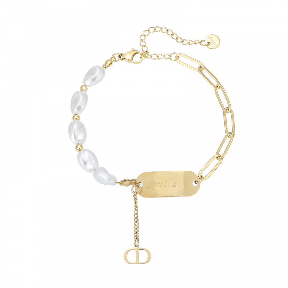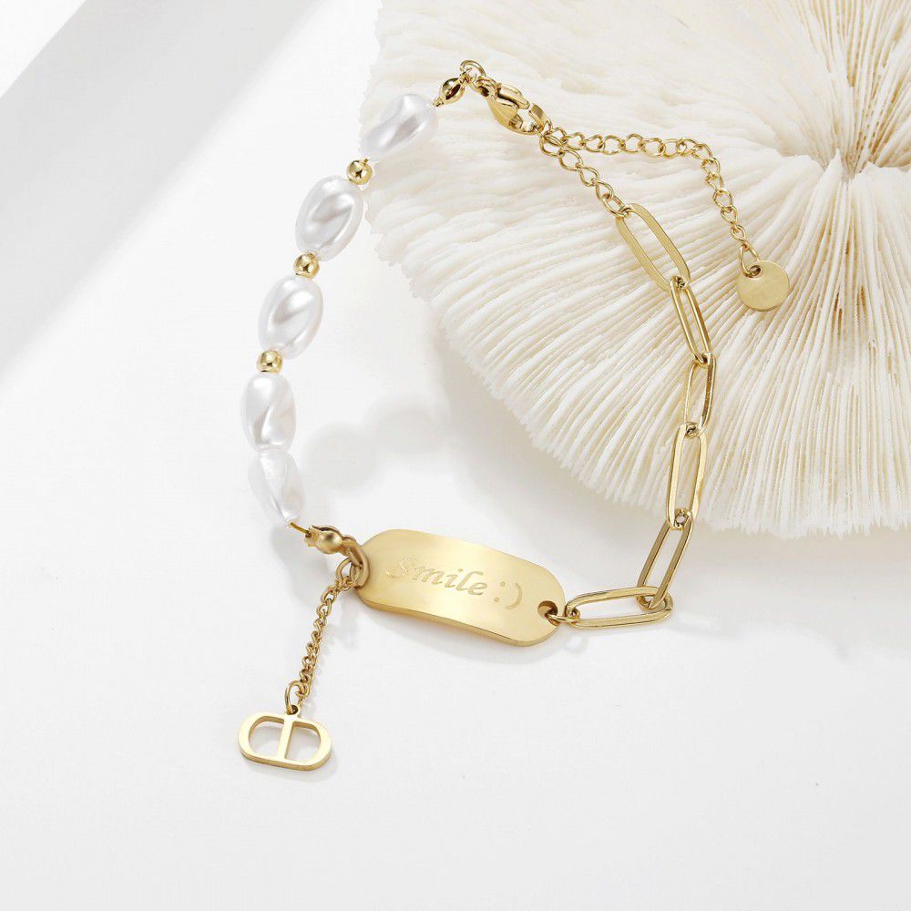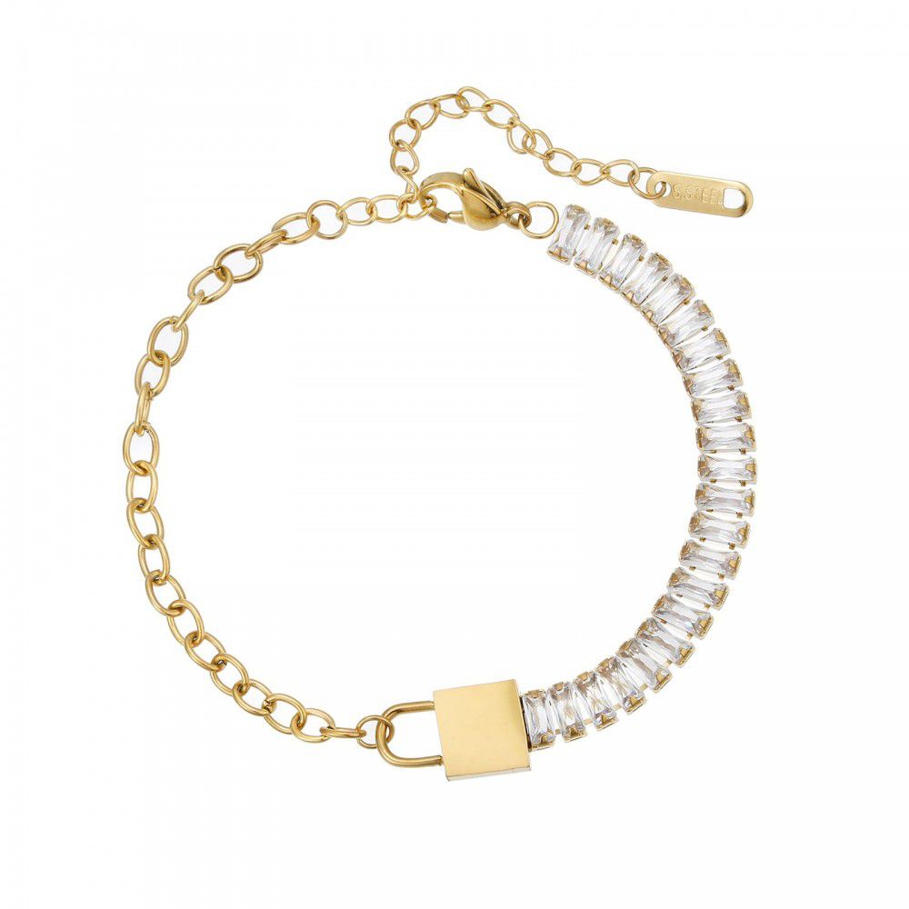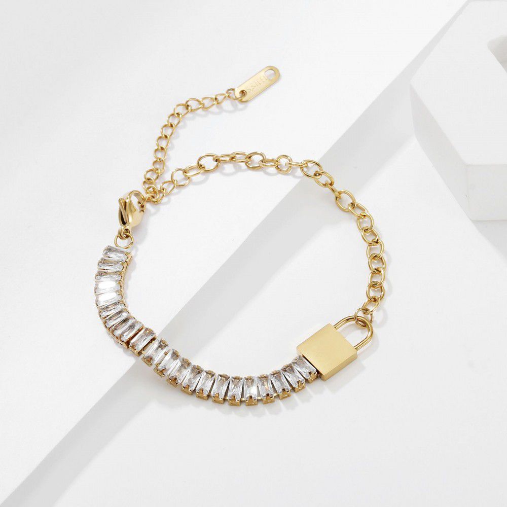 European and American ins fashion wild 18K genuine gold plated love zircon pearl lock letter pendant snake chain titanium steel bracelet