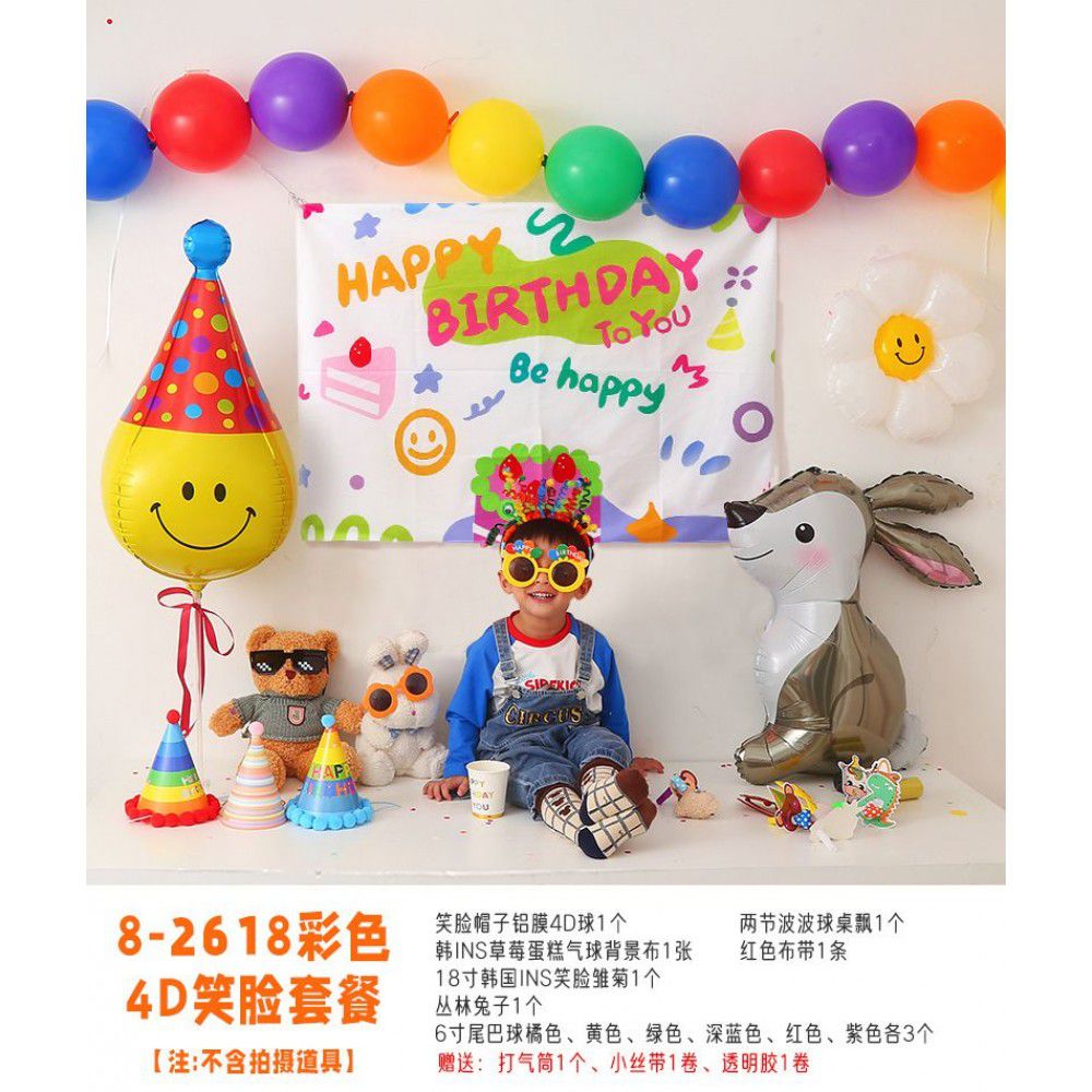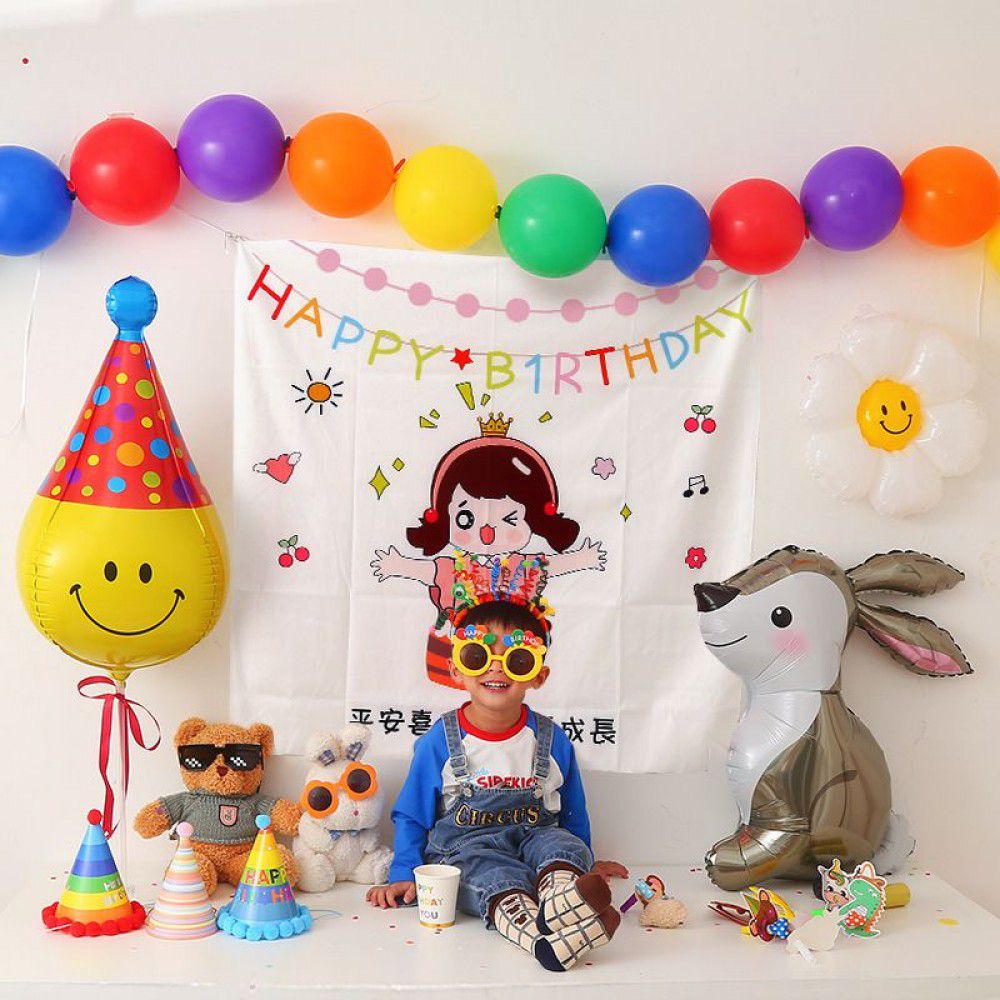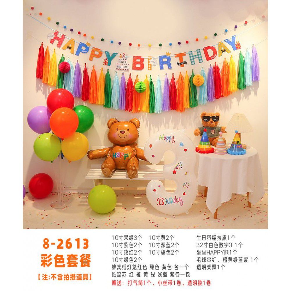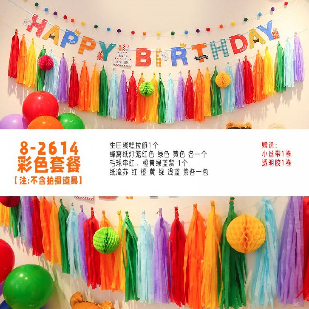 Ins colorful balloons boys and girls birthday decorations colorful rainbow fringe background wall balloon package