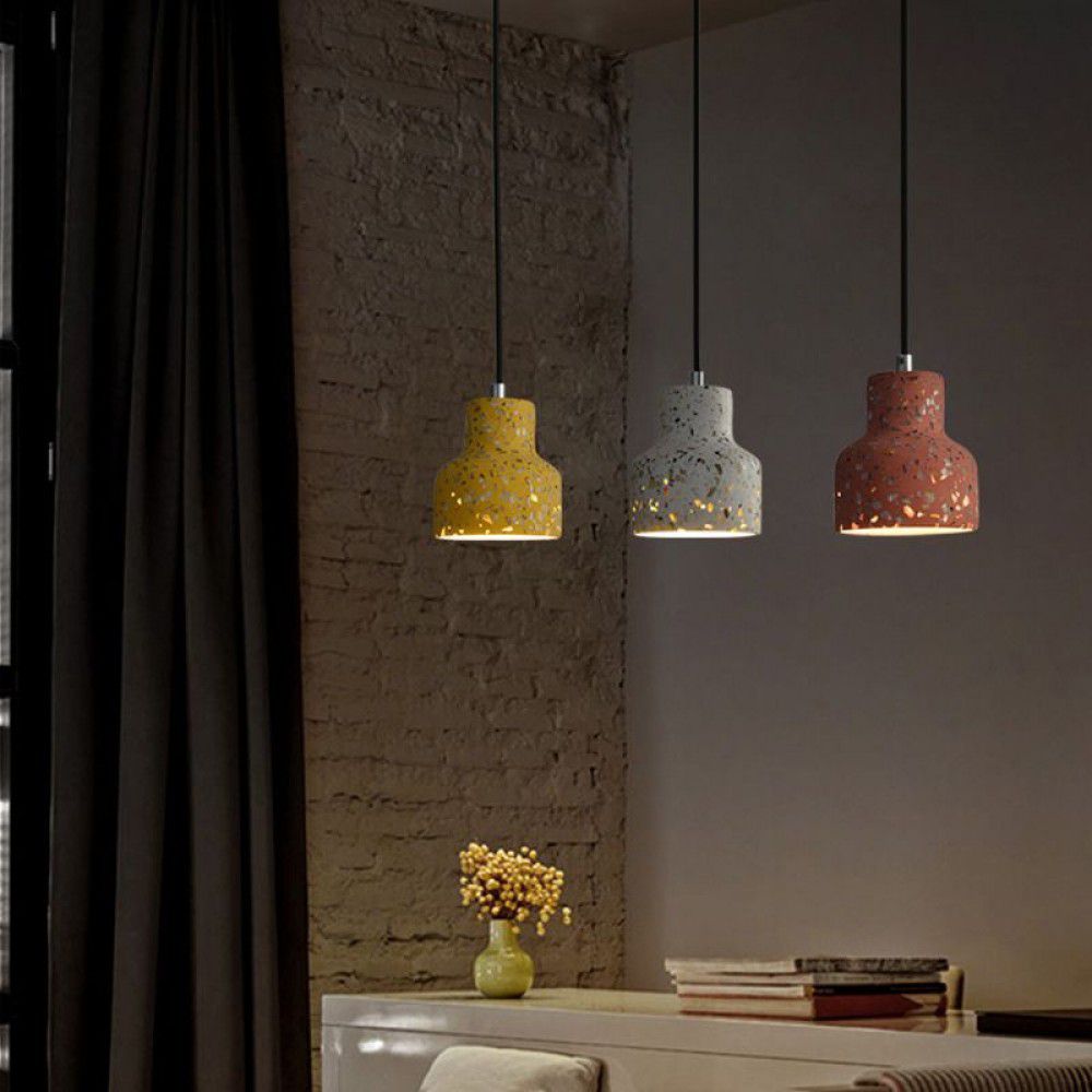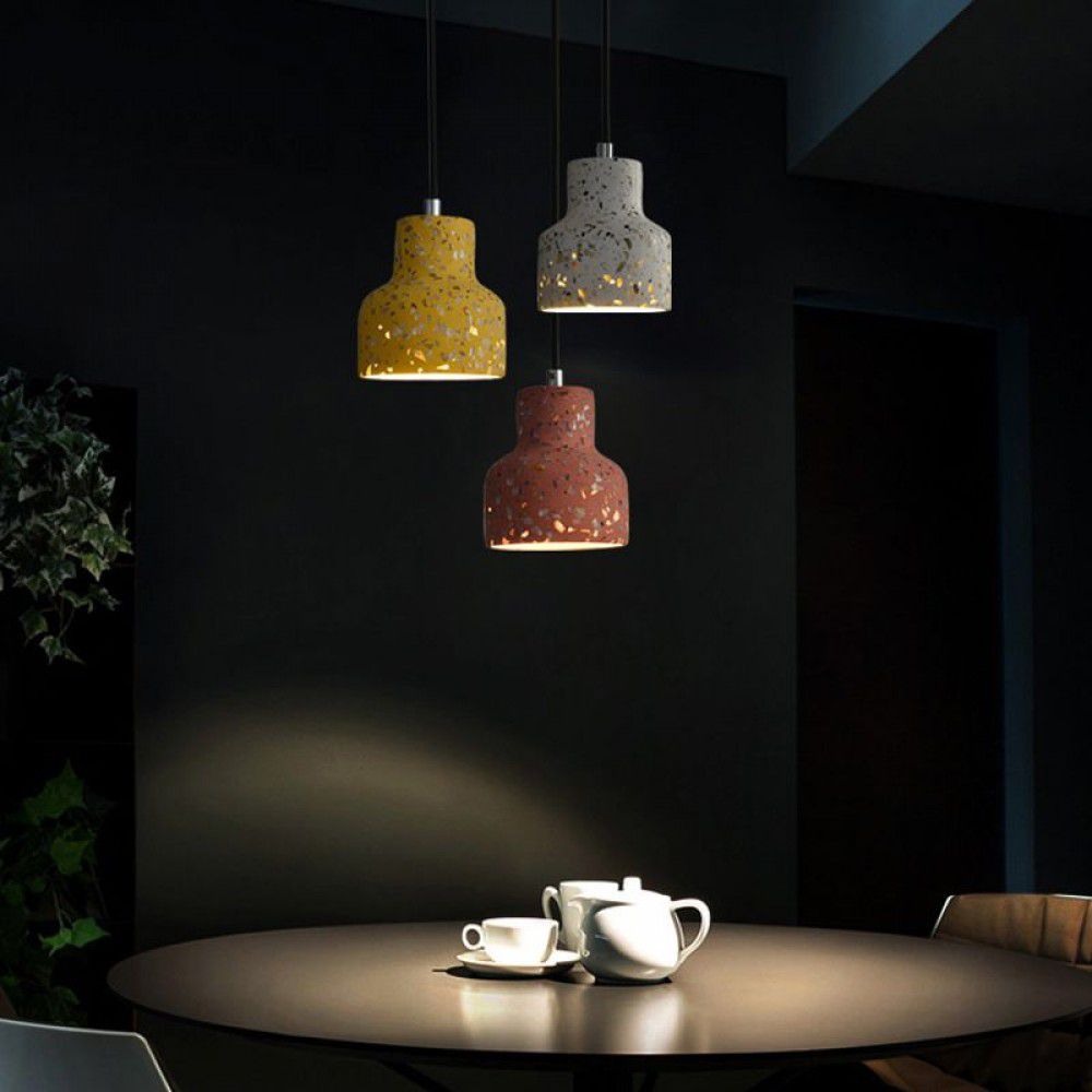 Nordic semi transparent cement chandelier creative personality bedside restaurant terrazzo color LED bar personality Chandelier