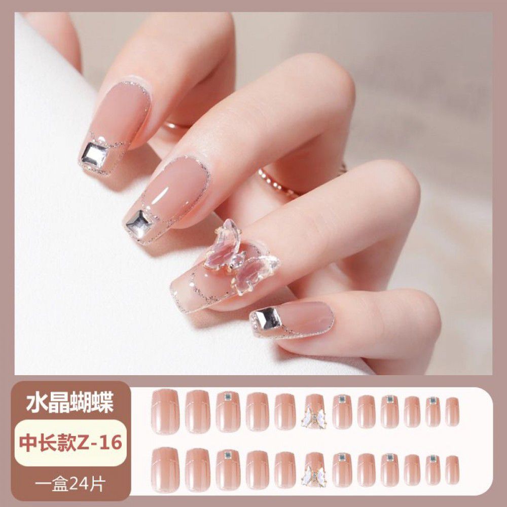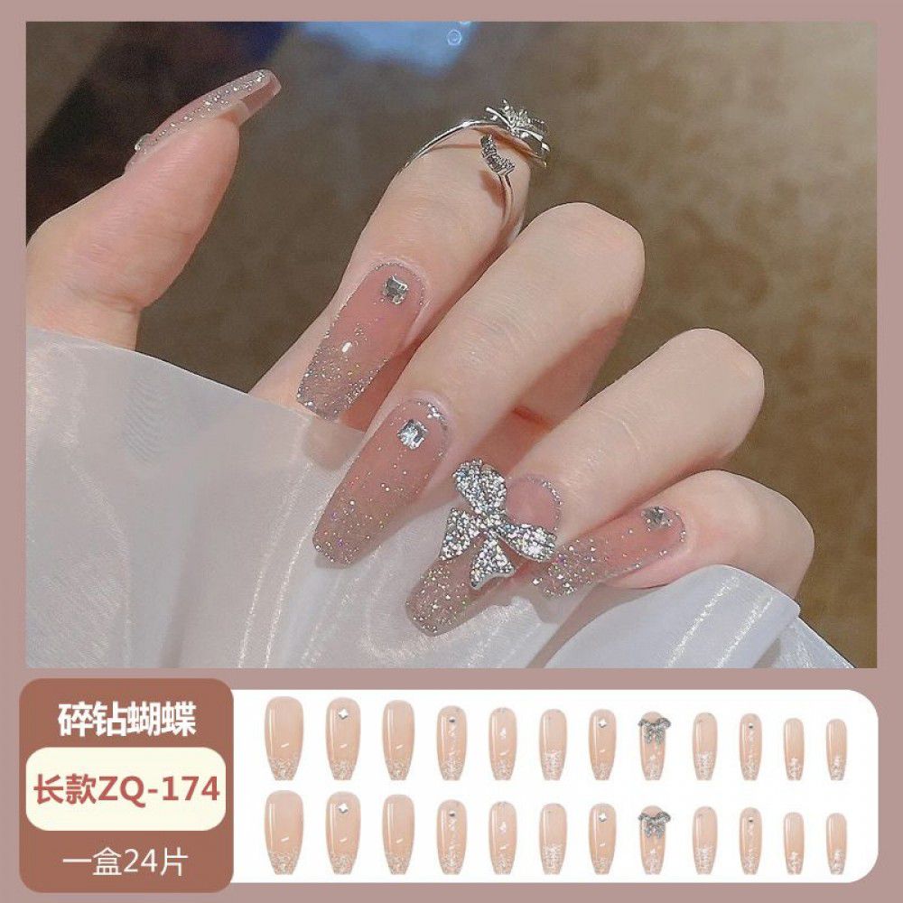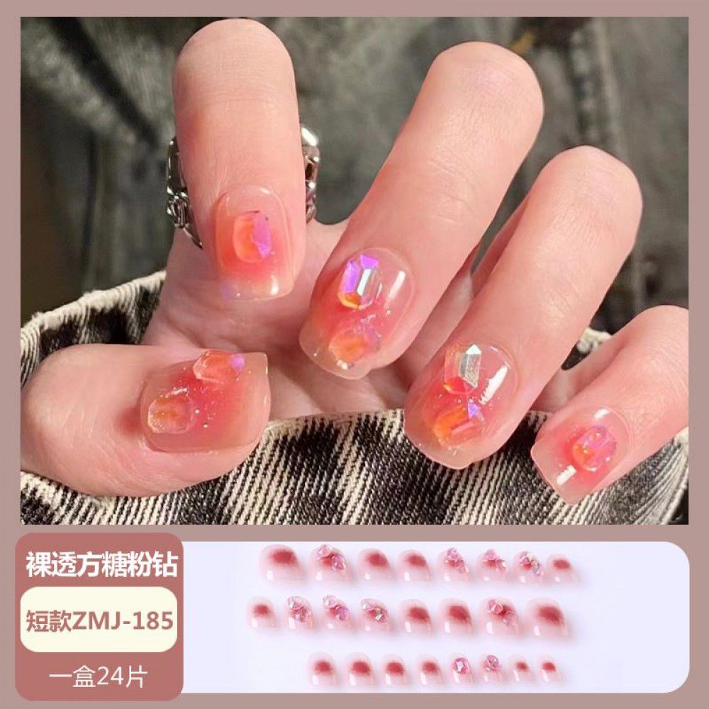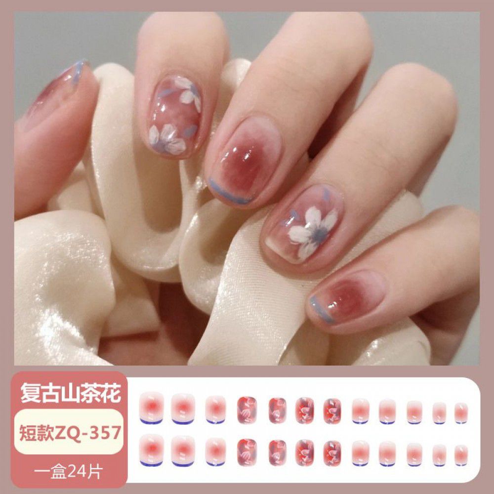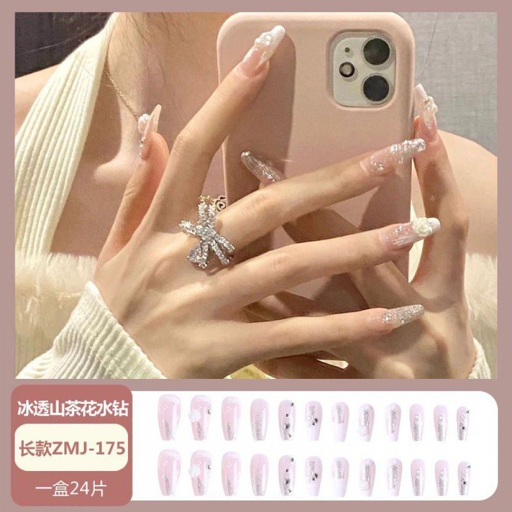Ice through Camellia water diamond nail patch net red nail patch medium long detachable wearing nail piece nail enhancement finished product