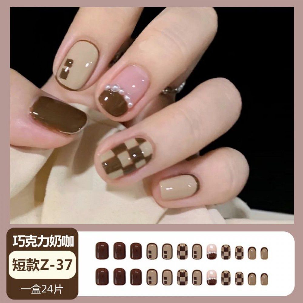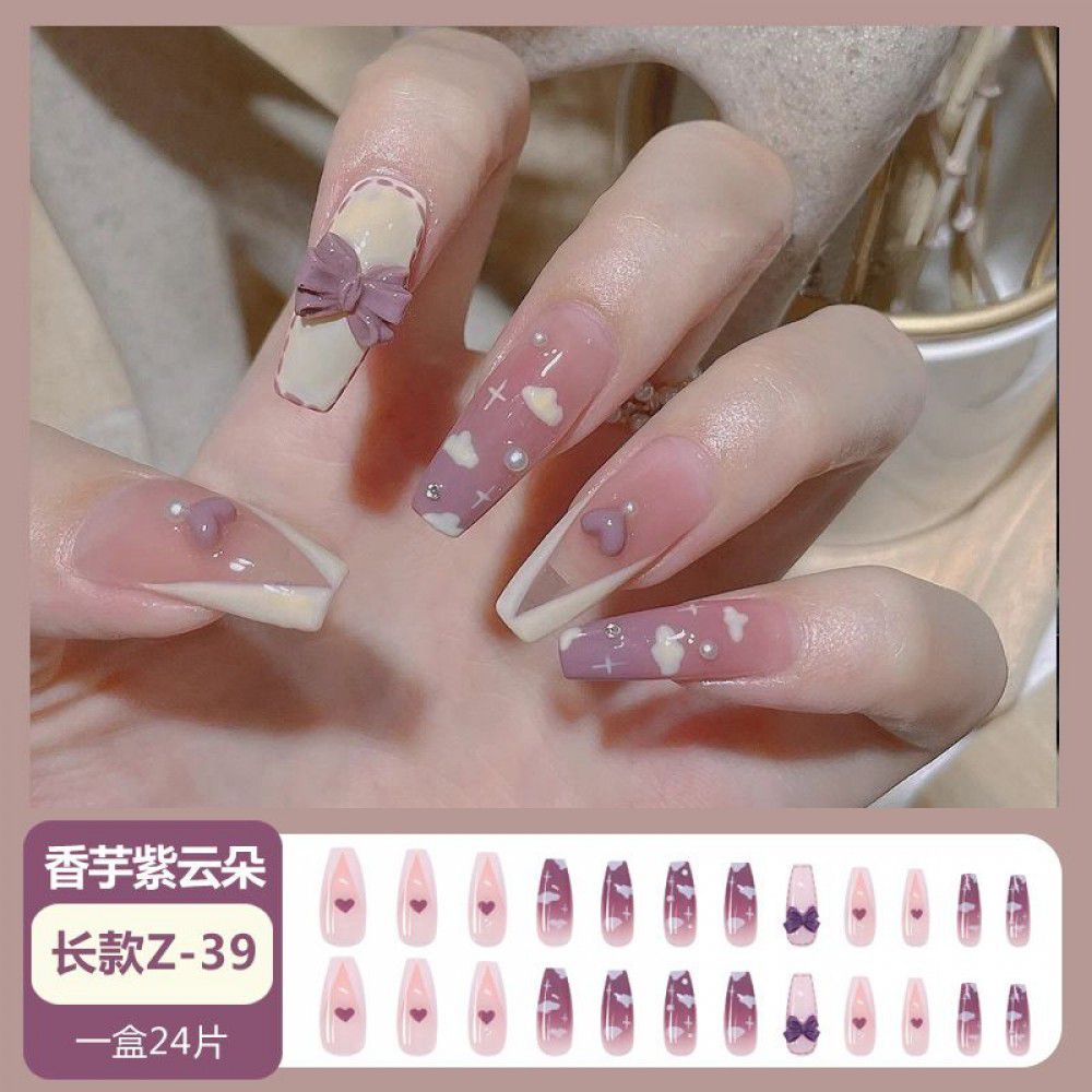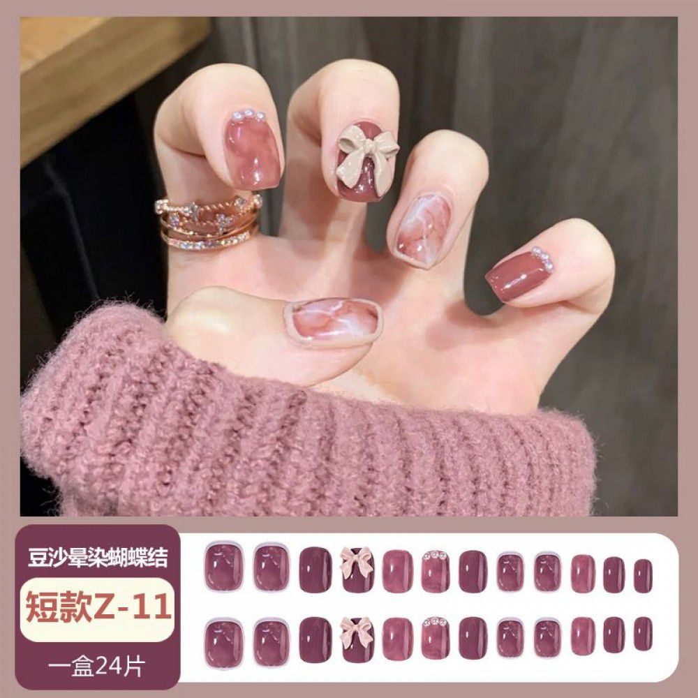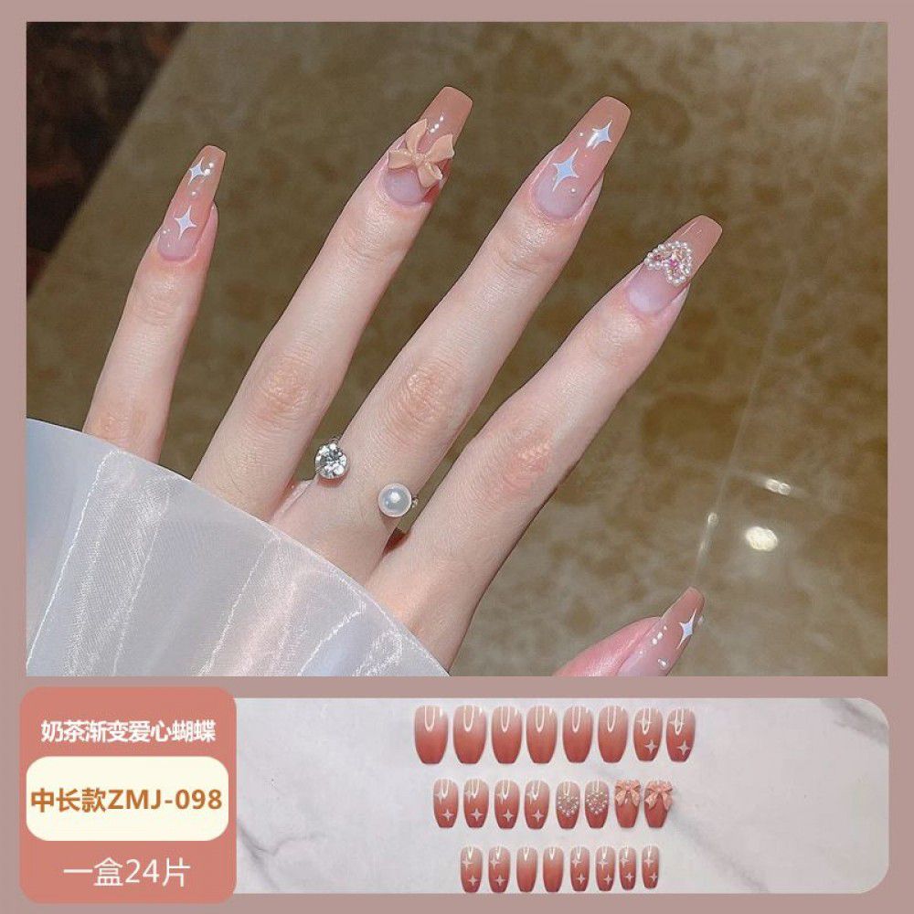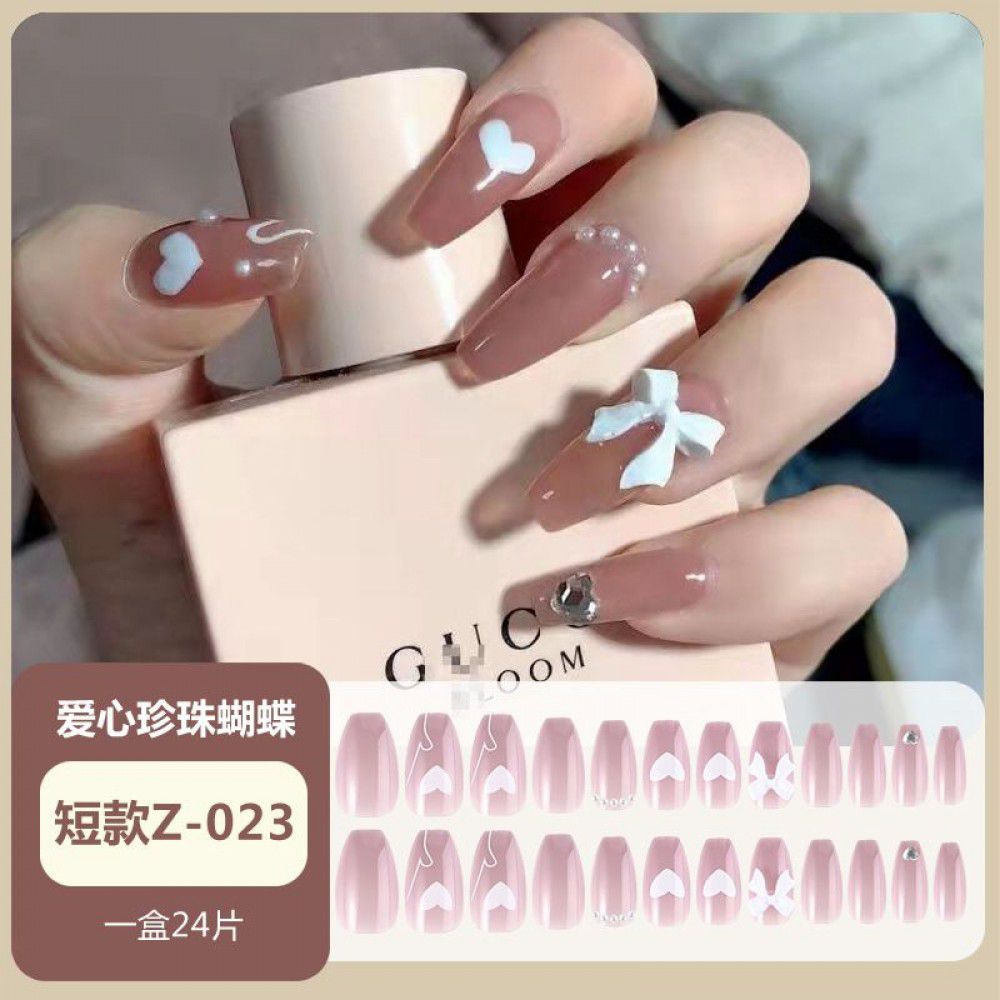 Ice through Camellia water diamond nail patch net red nail patch medium long detachable wearing nail piece nail enhancement finished product