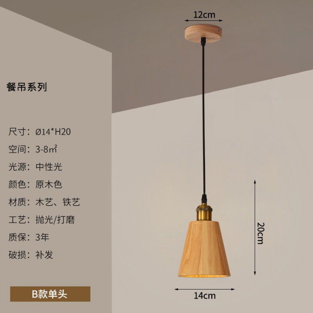 Nordic quiet wind bedroom bedside dining room chandelier bar coffee shop homestay solid wood Japanese style single head corridor Chandelier