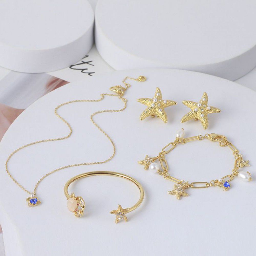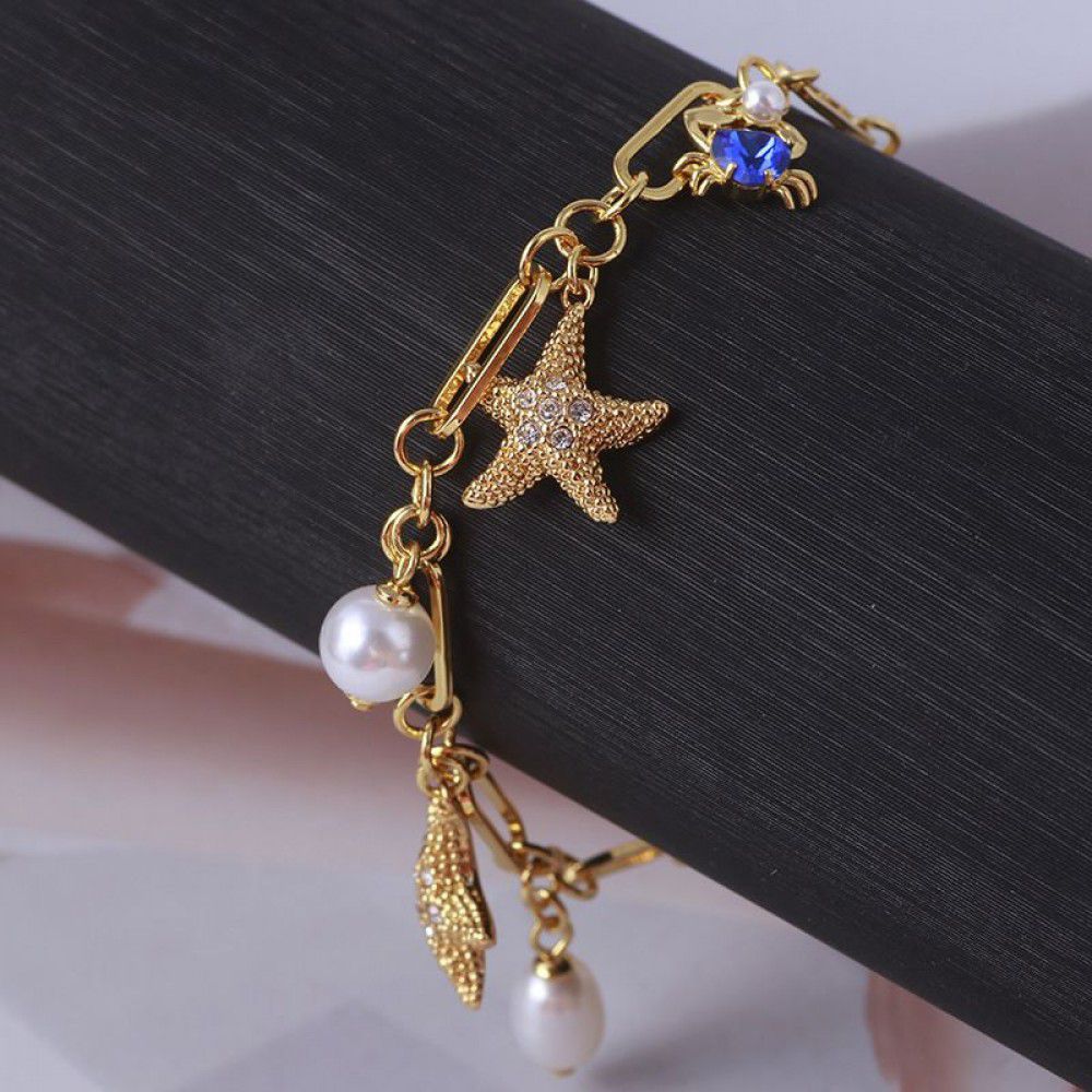 European and American tide brand jewelry wholesale: three-dimensional crab, starfish, inlaid freshwater pearl, multi drop bracelet, a mixed batch