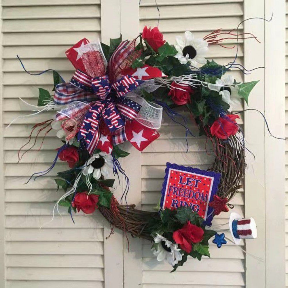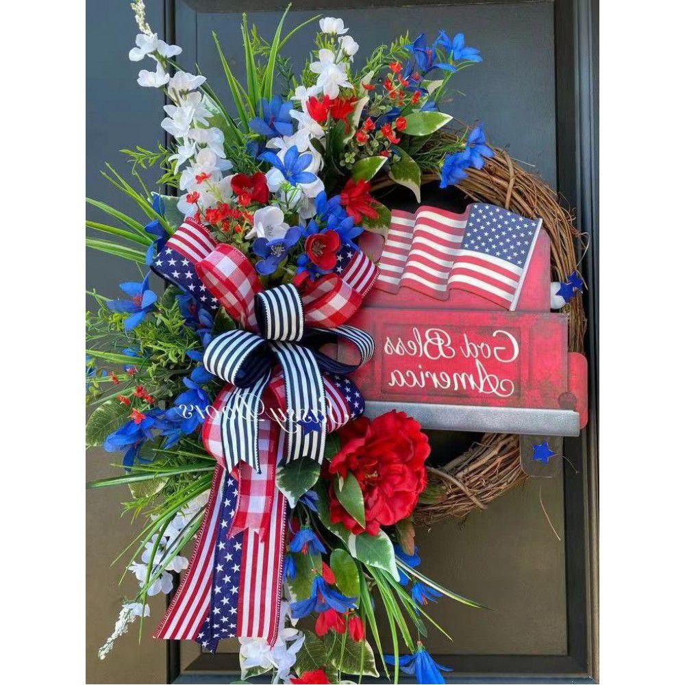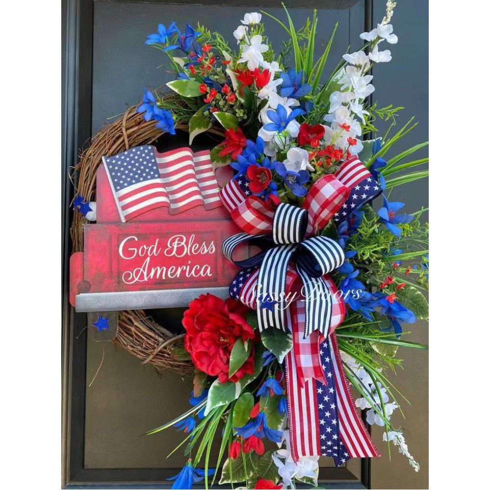 New products of cross-border independent station: American National Day, independence day, wreath, door hanging, home fabric decoration, holiday window props