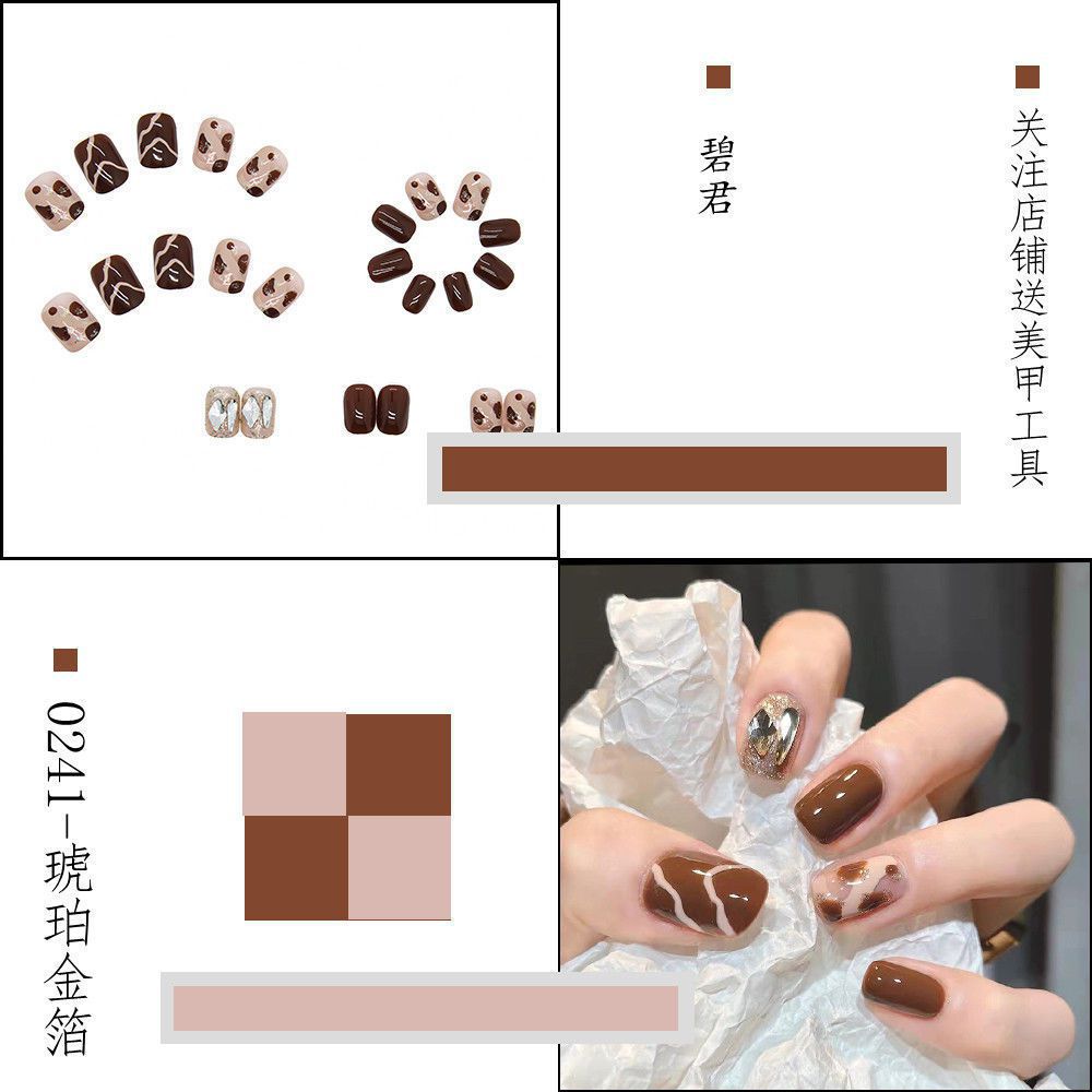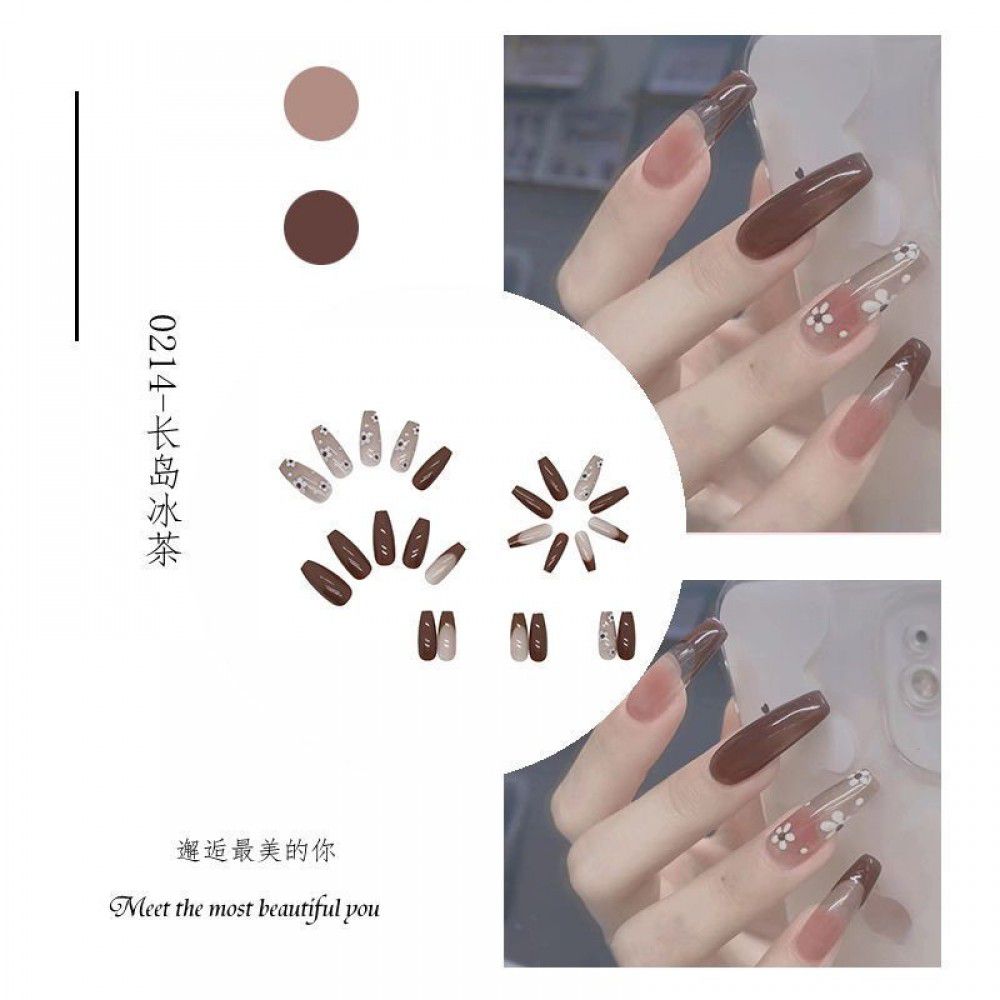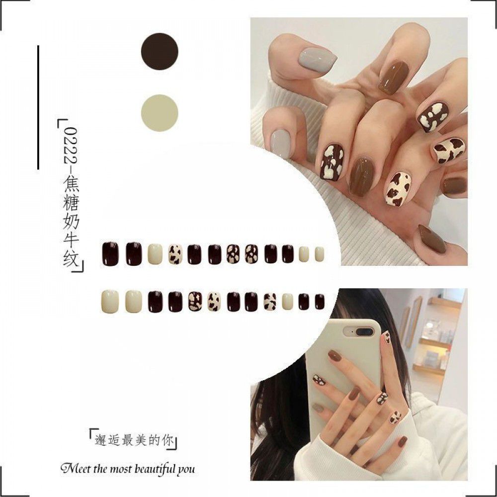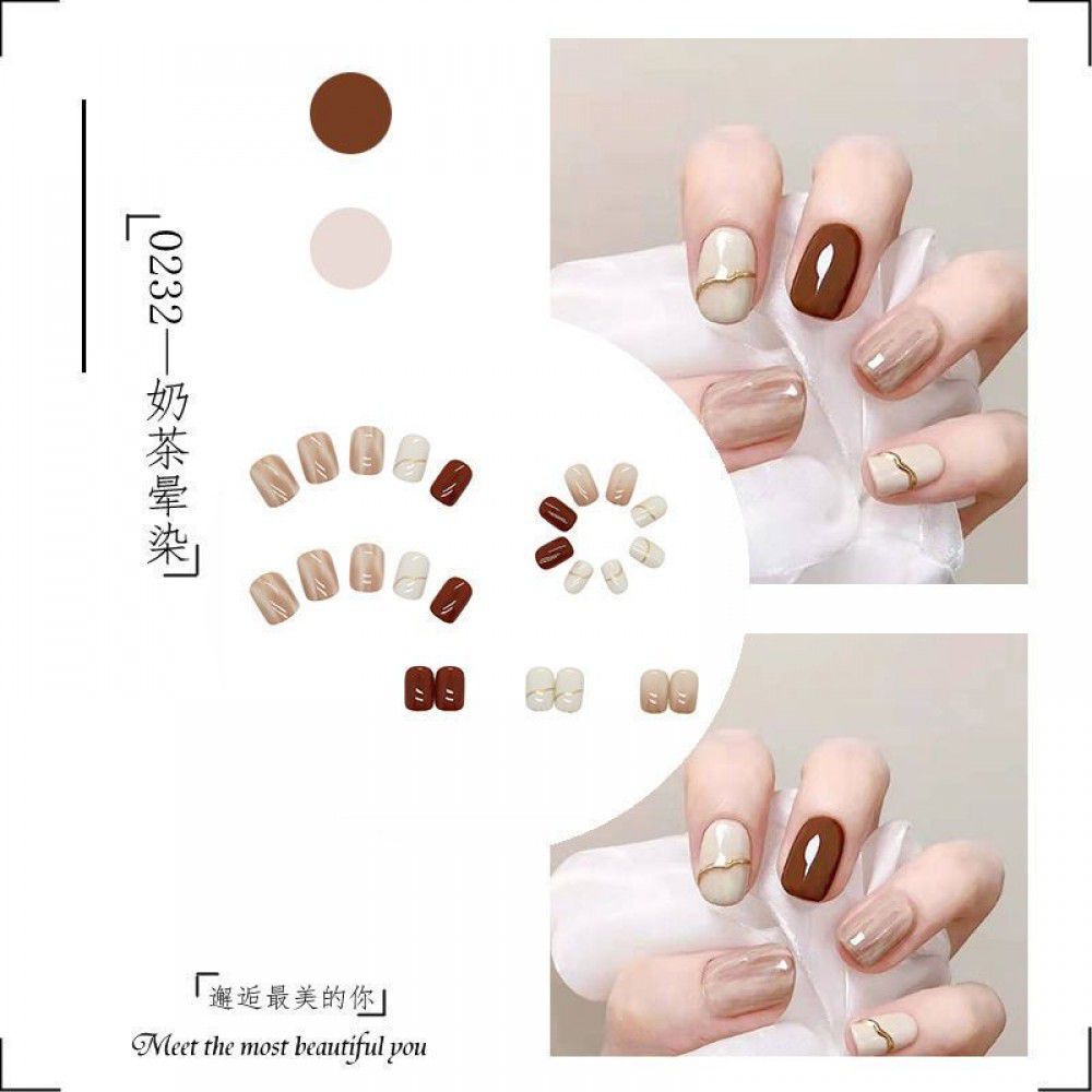 Package mail: Phnom Penh milk tea halo dye nail patch manual wearing nail female student medium long nail patch fake nail