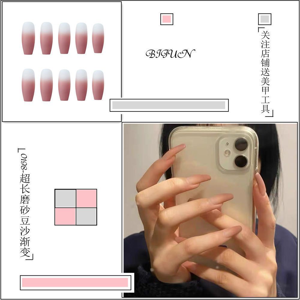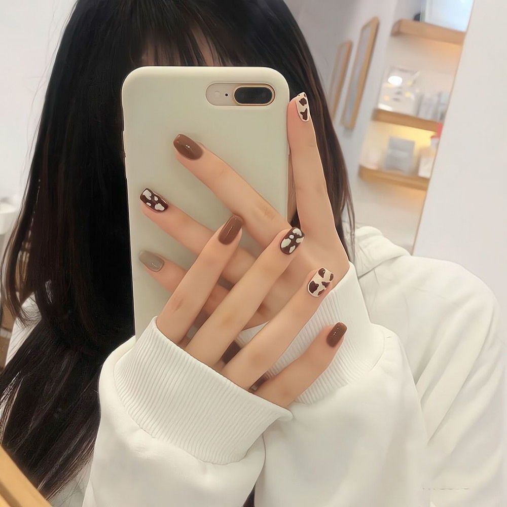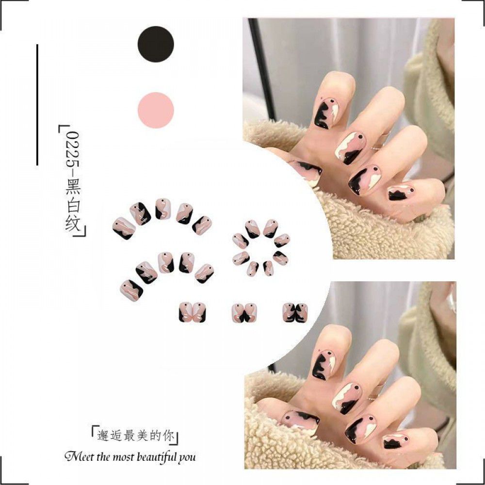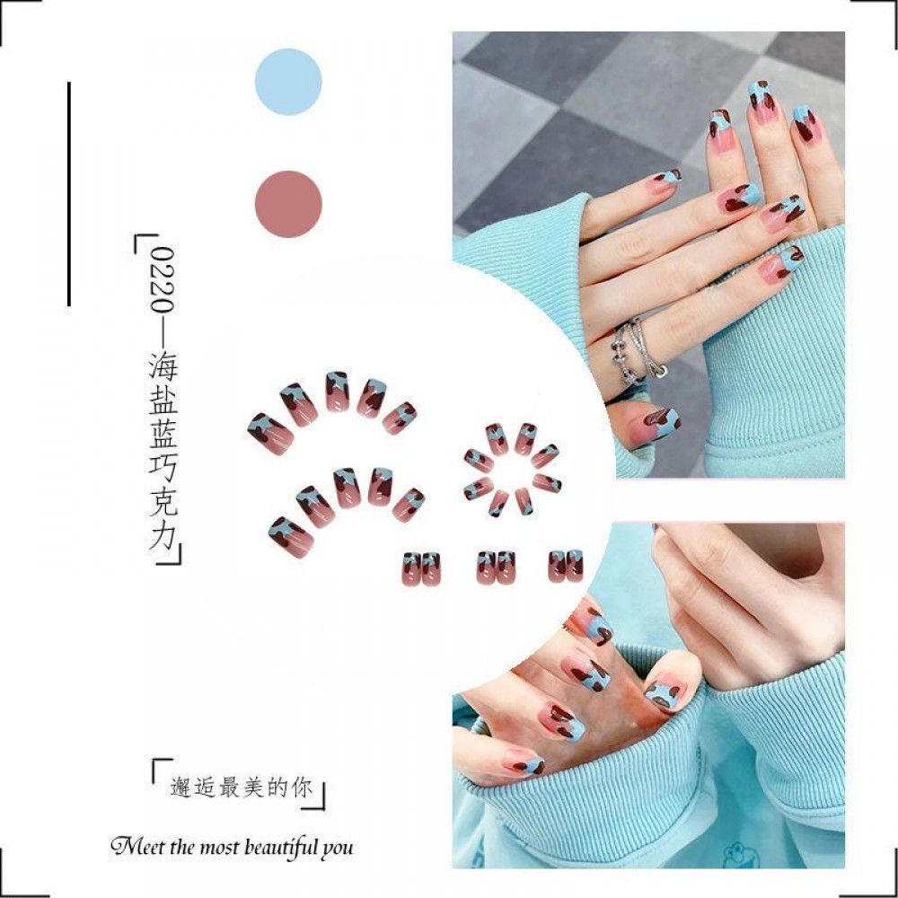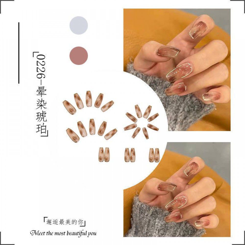 Package mail: Phnom Penh milk tea halo dye nail patch manual wearing nail female student medium long nail patch fake nail