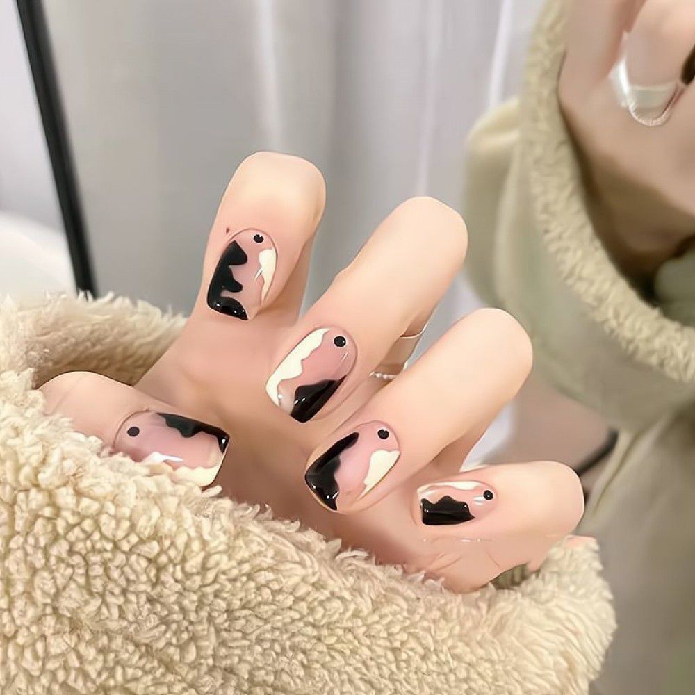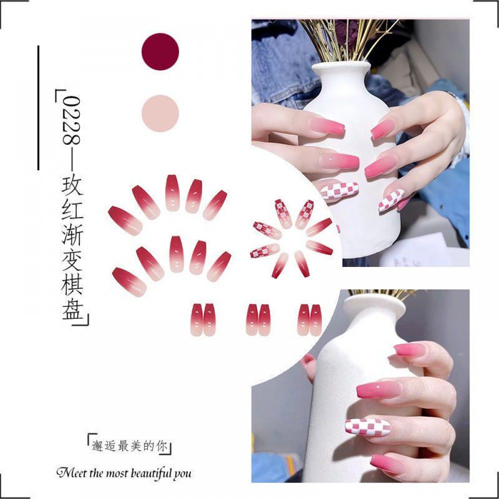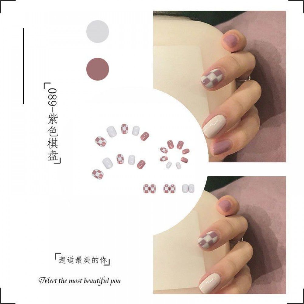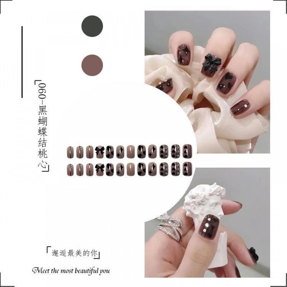 Package mail: Phnom Penh milk tea halo dye nail patch manual wearing nail female student medium long nail patch fake nail