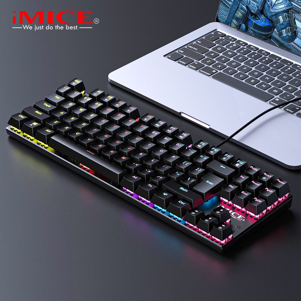 Imice manufacturer directly provides 87 key USB cross-border cable RGB chicken eating green axis mechanical E-sports metal game keyboard
