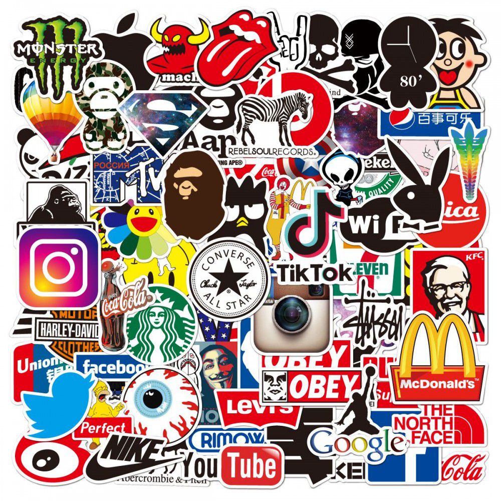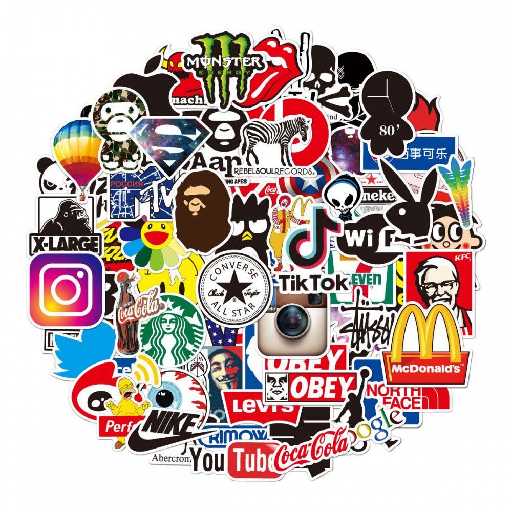 100 non repetitive tide brand logo decorative graffiti stickers waterproof tide brand stickers for cars, motorcycles and skateboards