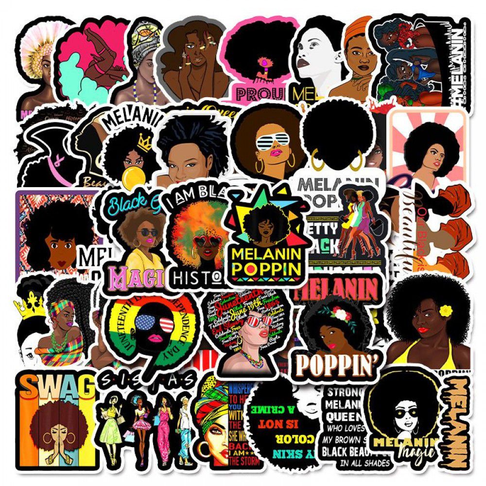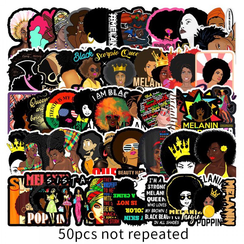 50 inspirational black girl luggage stickers bicycle scooter car waterproof decoration graffiti stickers