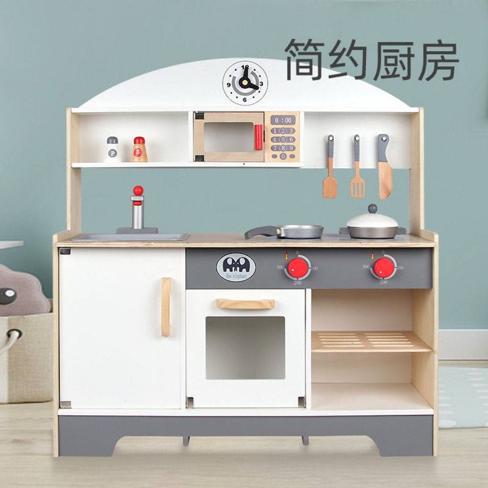 New children's Wooden simulation cooking kitchen set wooden family experience refrigerator kitchen toys