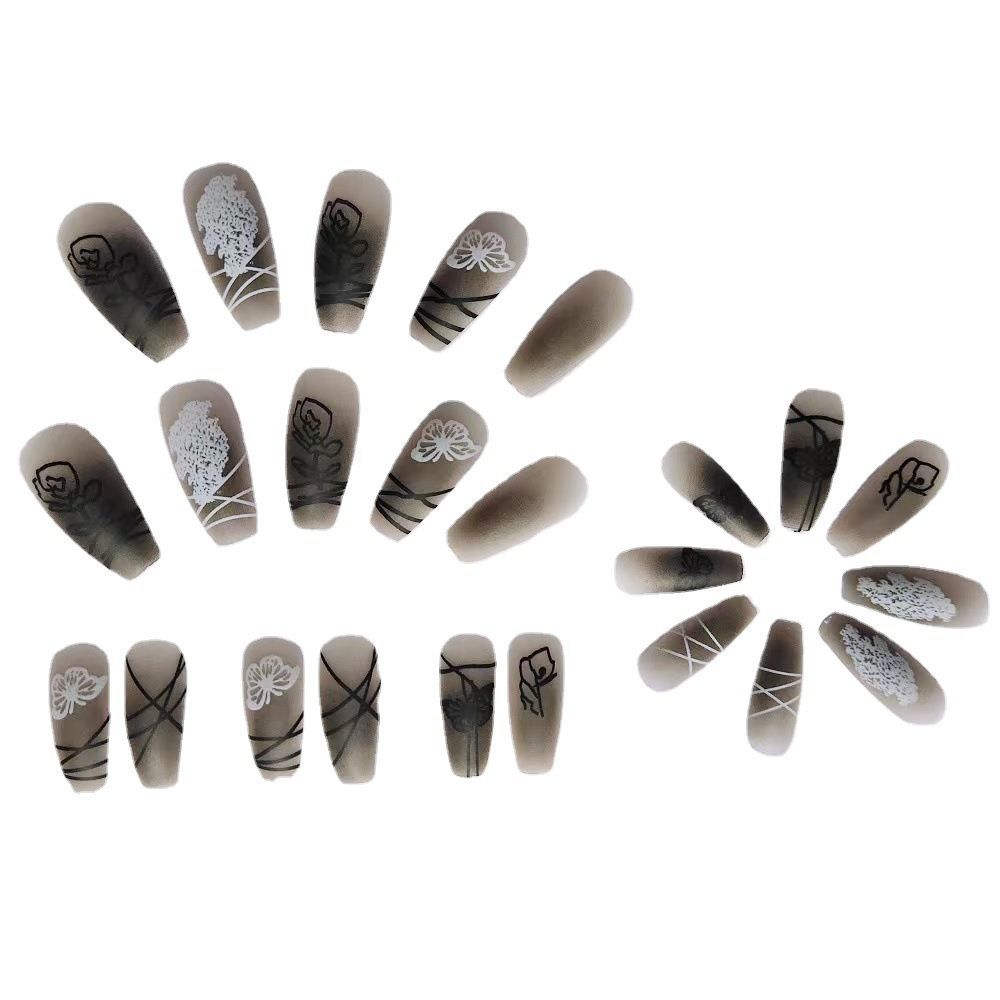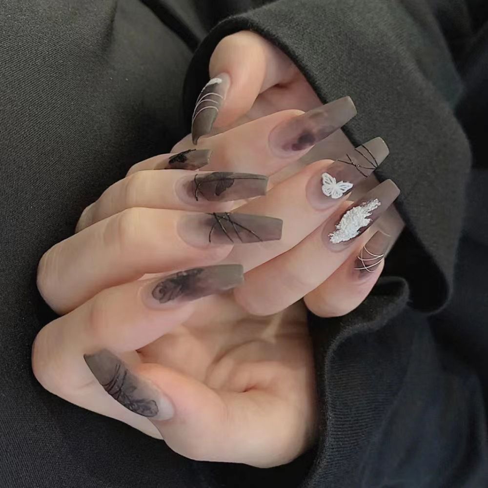 Wearing nail piece shows white nail enhancement finished fake nail piece dark cool rose scrub nail piece detachable