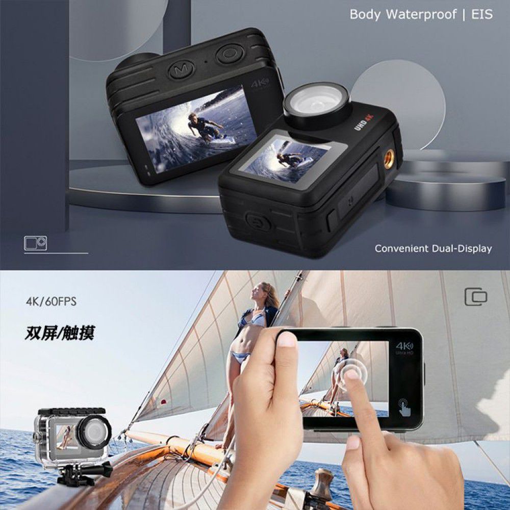 Manufacturer direct sales: real 4k60 frame outdoor sports camera, dual screen naked machine, anti shake diving ski camera, cross-border
